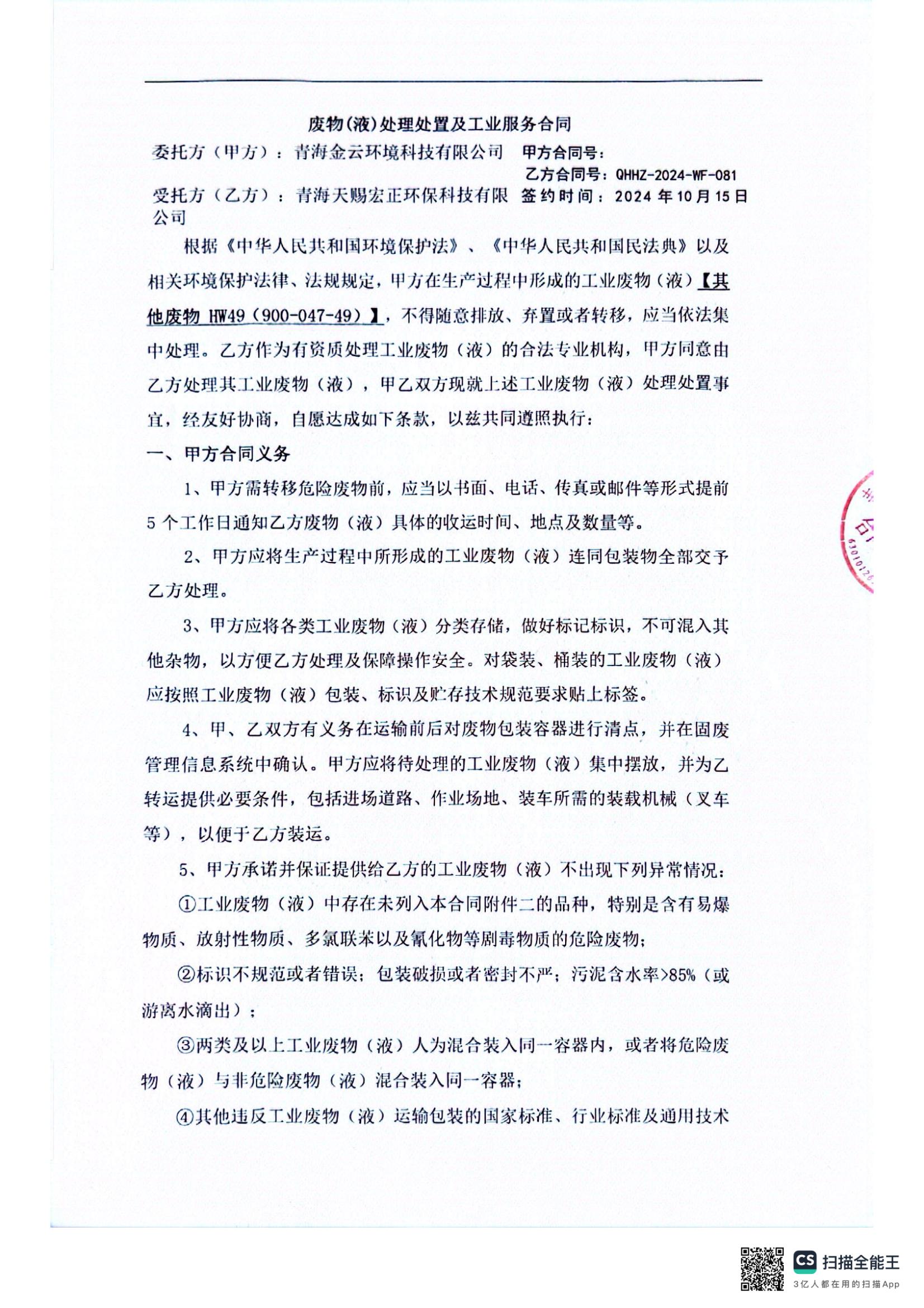 危廢處置合同發(fā)布日期:(2025/1/2) 點擊次數(shù):1438 |
