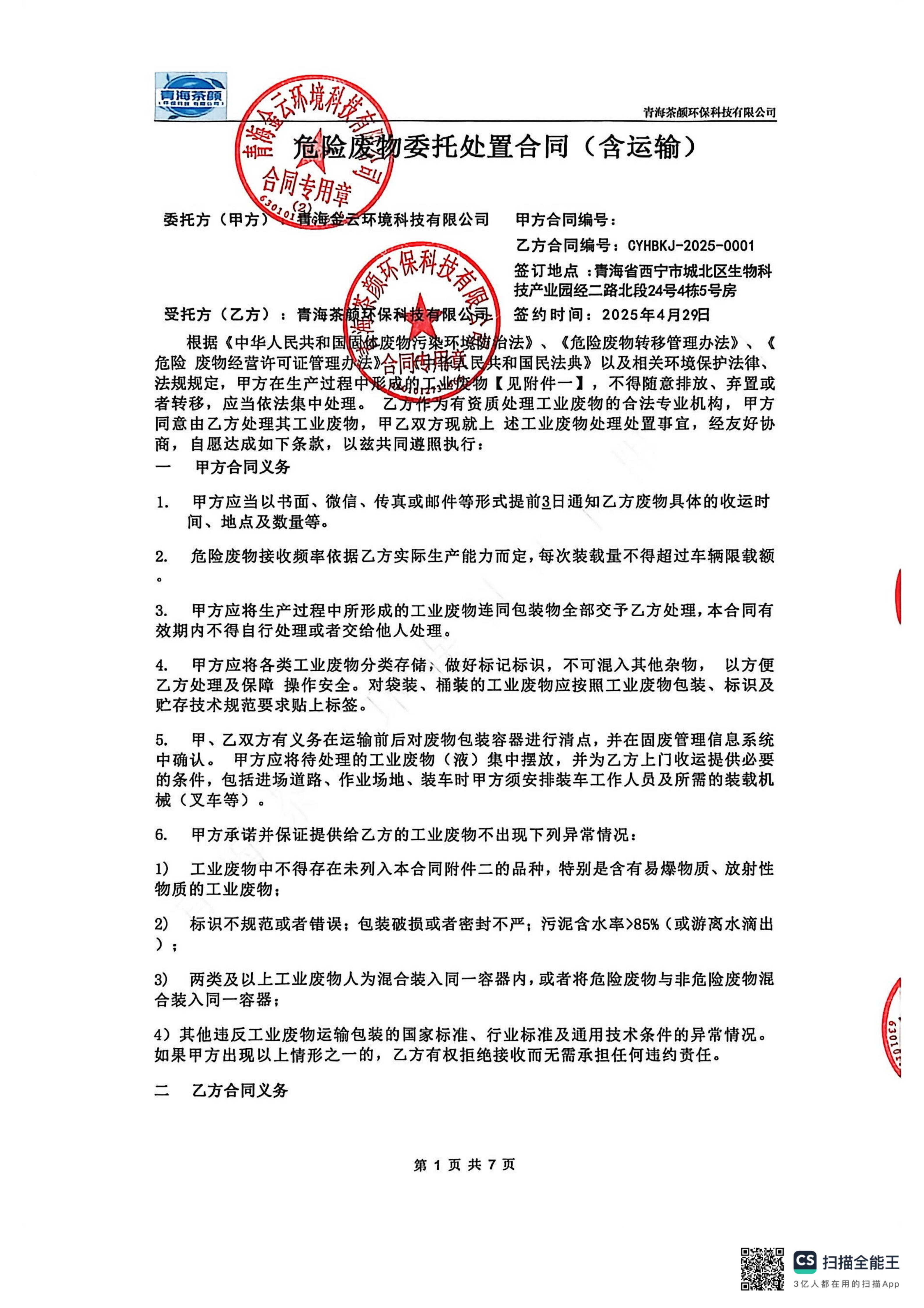 危廢處置合同