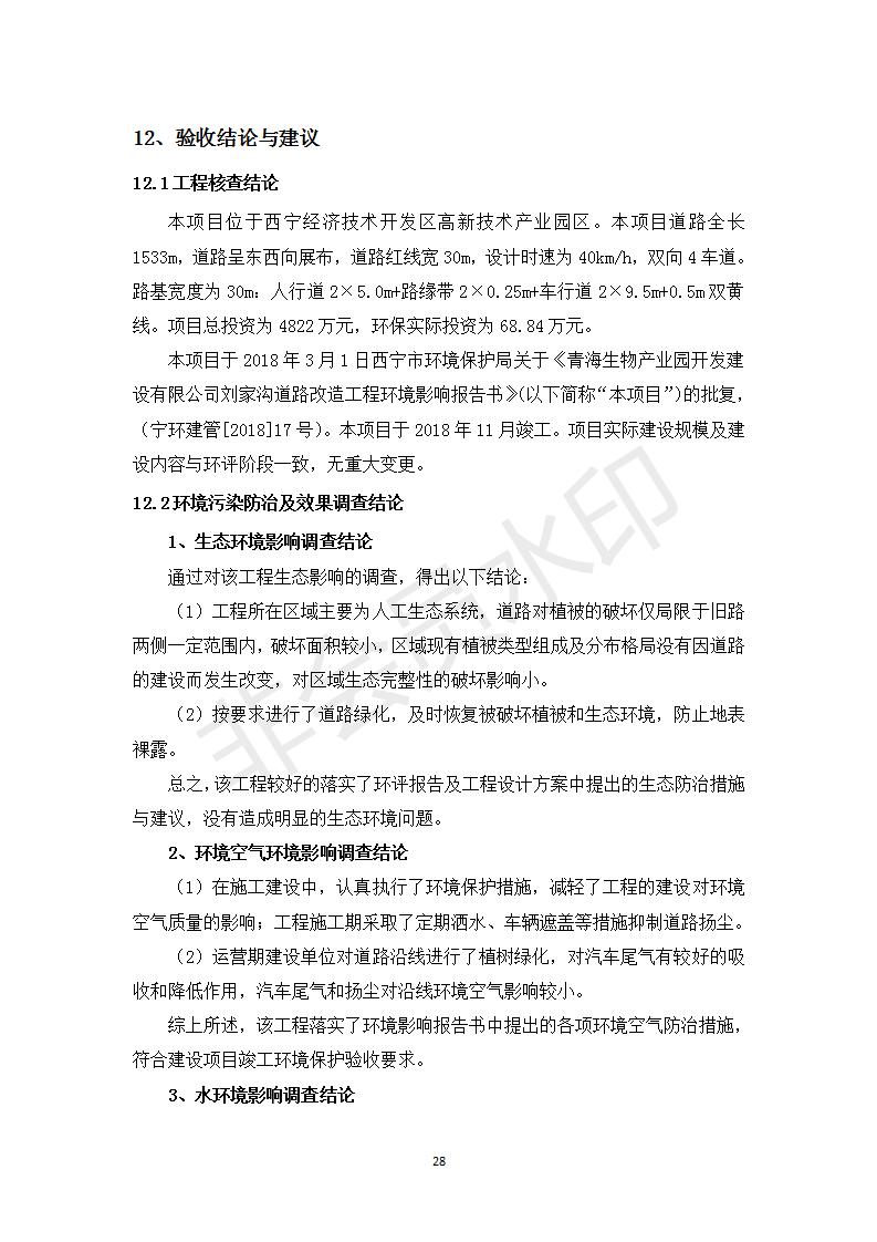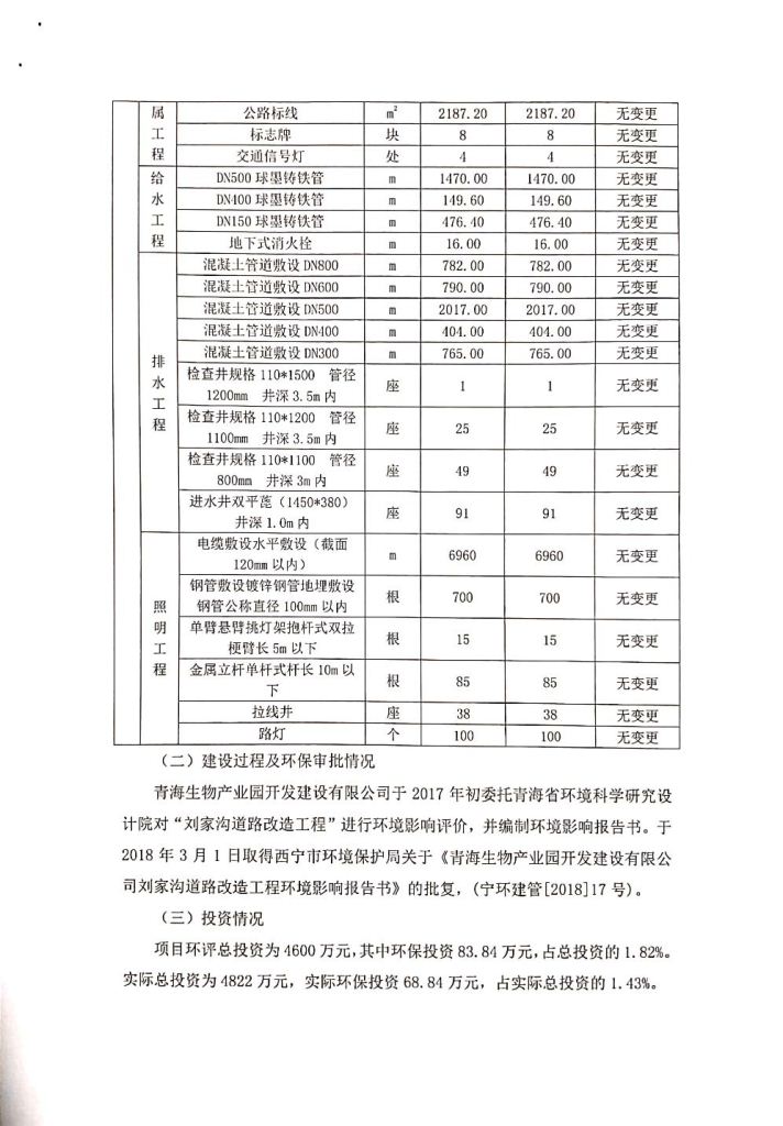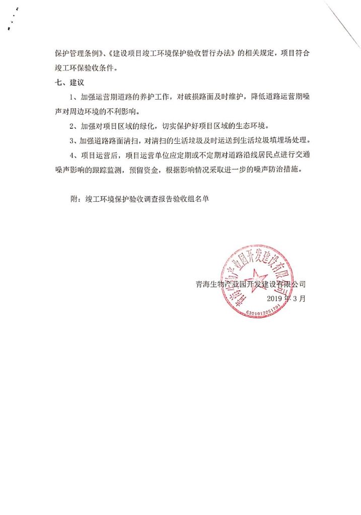 青海生物產(chǎn)業(yè)園開發(fā)建設(shè)有限公司劉家溝道路改造工程竣工環(huán)境保護驗收調(diào)查公示發(fā)布日期:(2019-3-14) 點擊次數(shù):2916 |