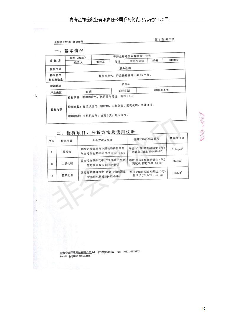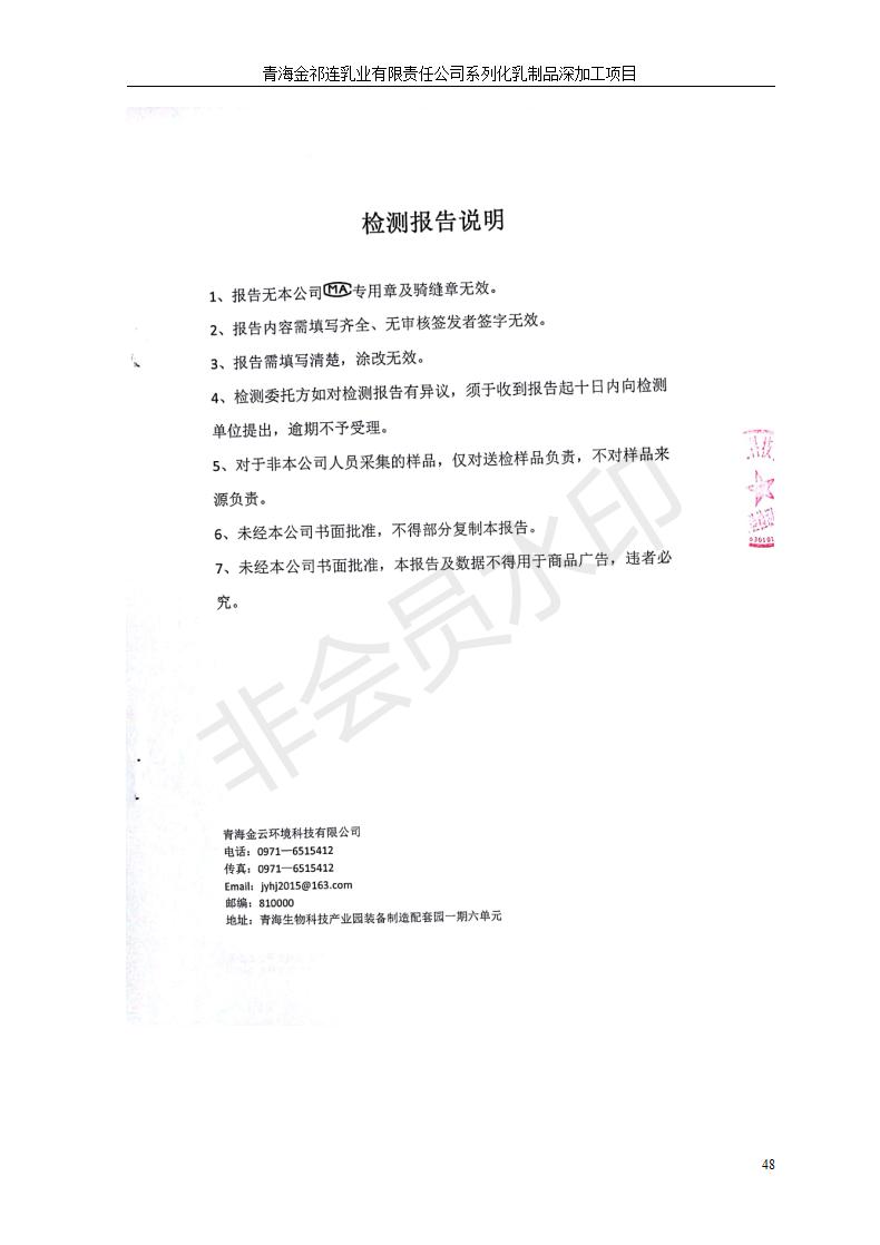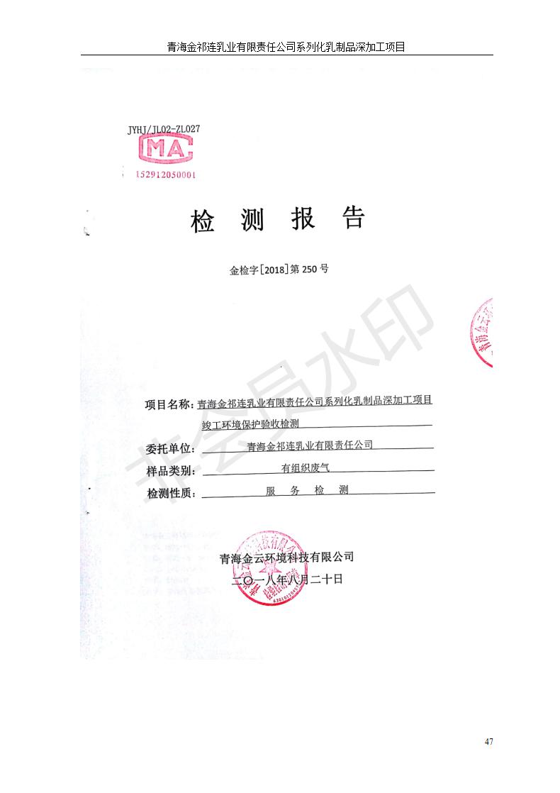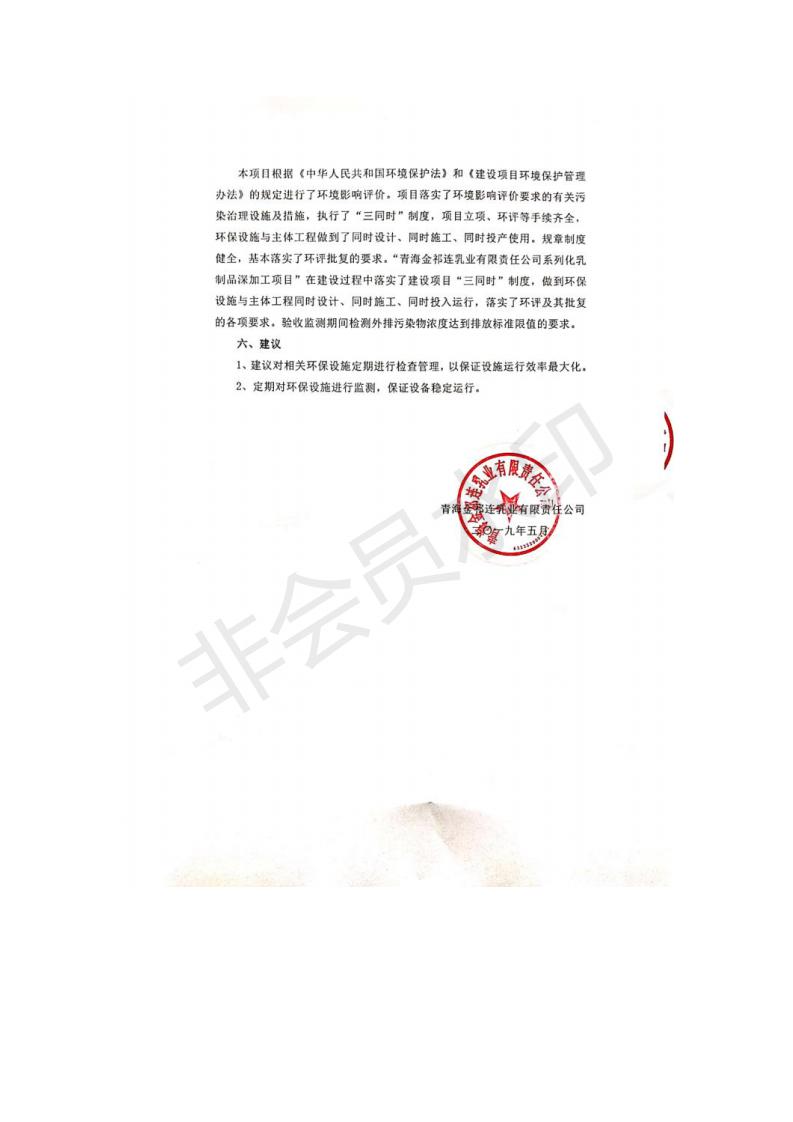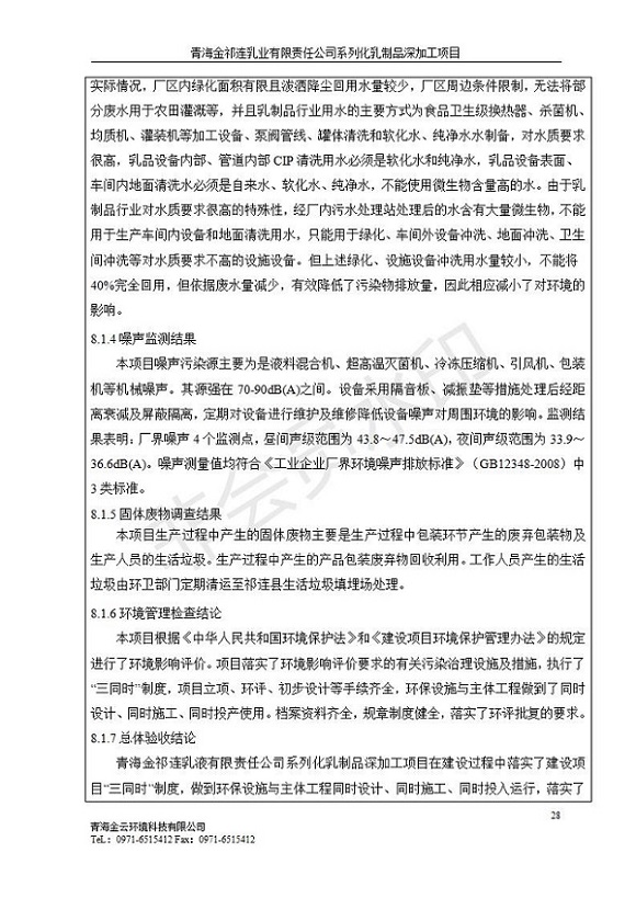 青海金祁連乳業(yè)有限責任公司系列化乳制品深加工項目竣工環(huán)境保護驗收監(jiān)測報告表公示發(fā)布日期:(2019-7-10) 點擊次數(shù):2366 |