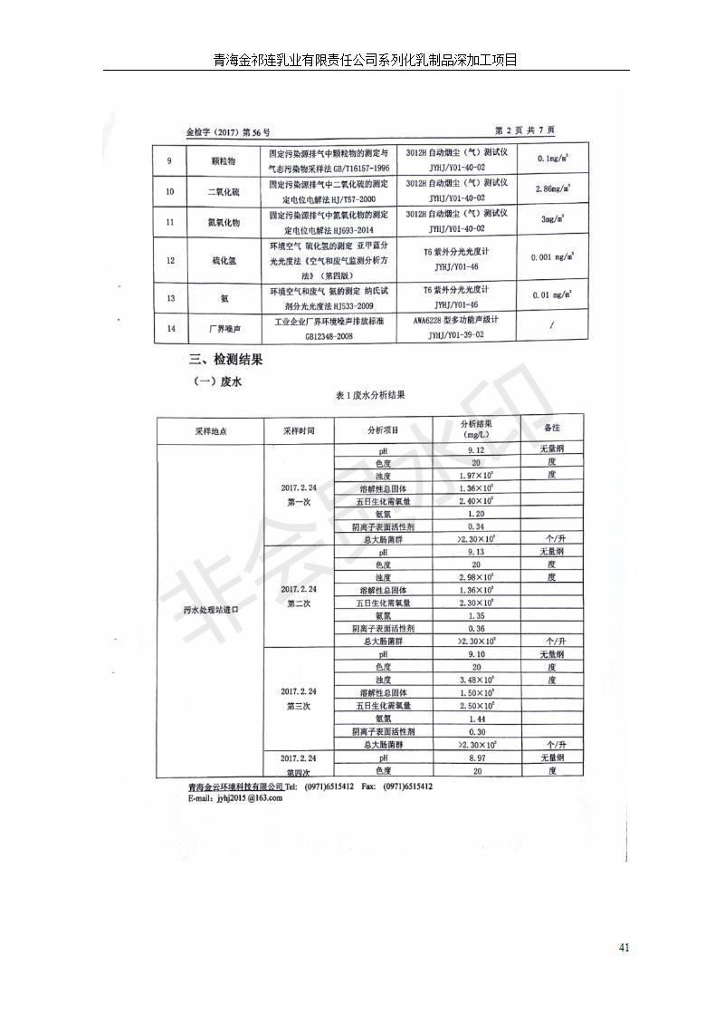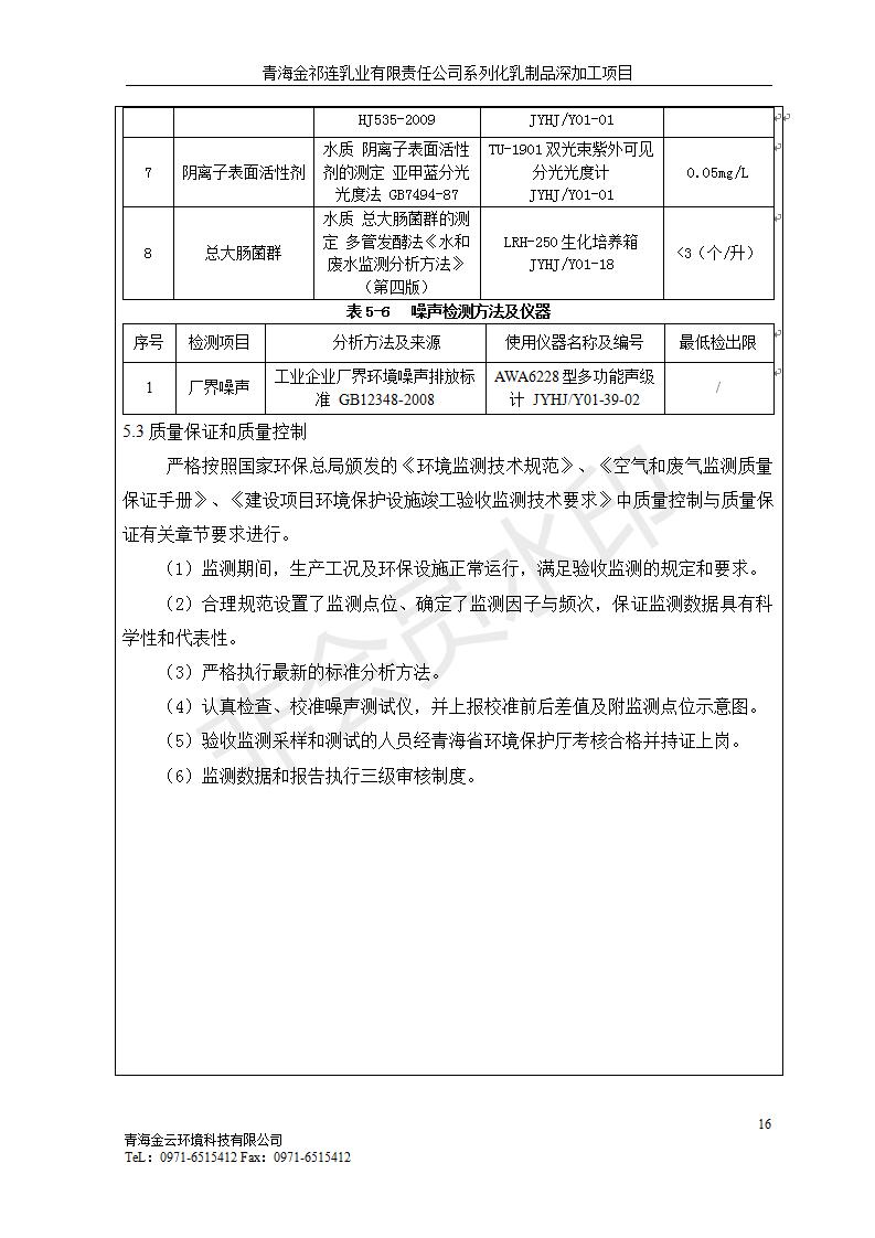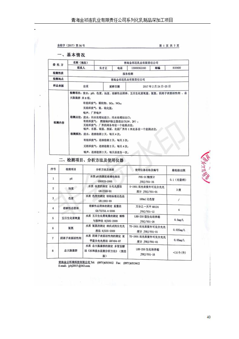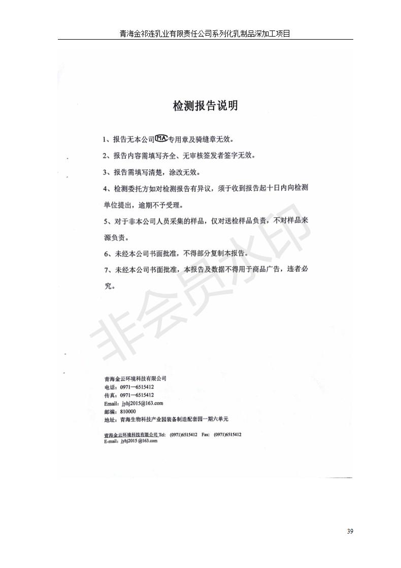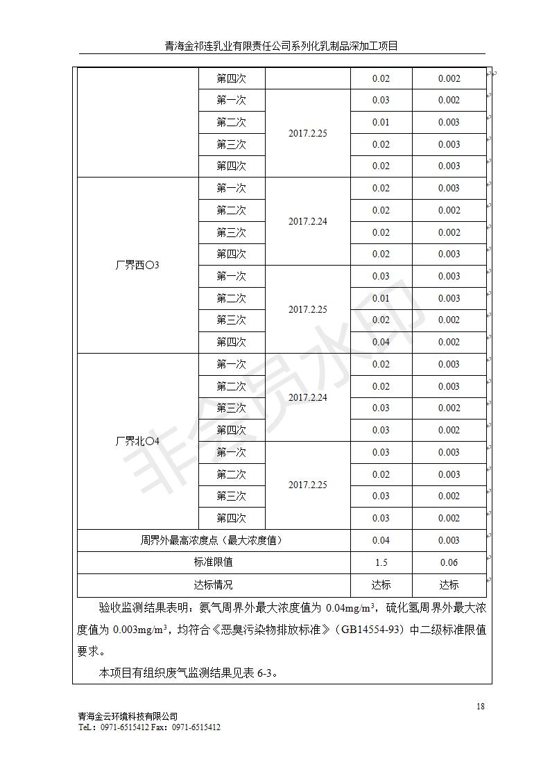 青海金祁連乳業(yè)有限責任公司系列化乳制品深加工項目竣工環(huán)境保護驗收監(jiān)測報告表公示發(fā)布日期:(2019-7-10) 點擊次數(shù):2366 |