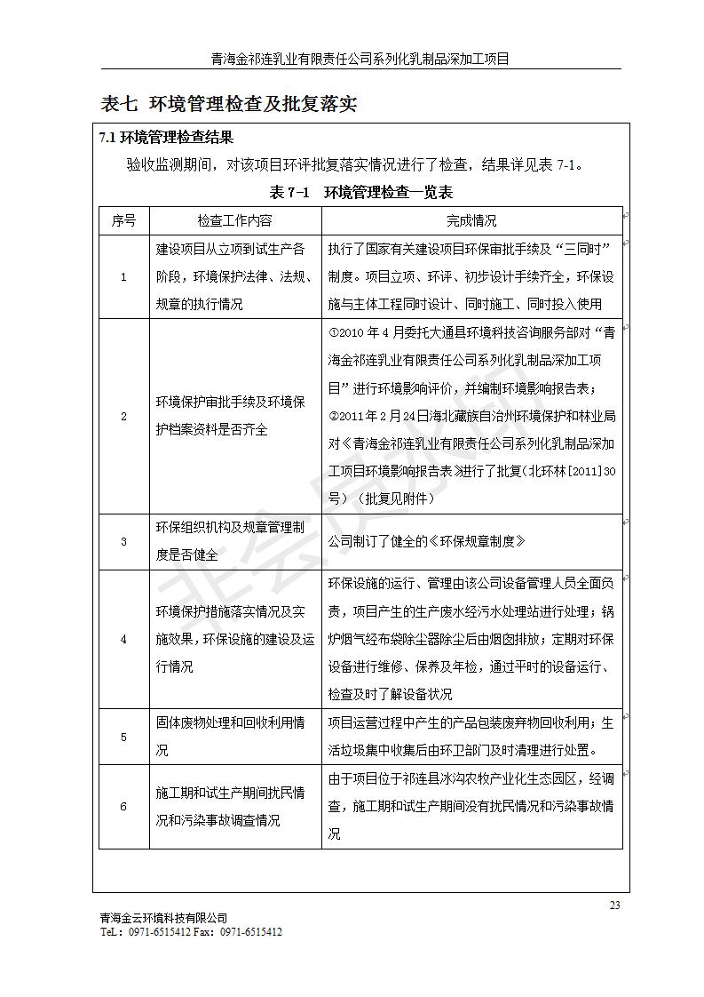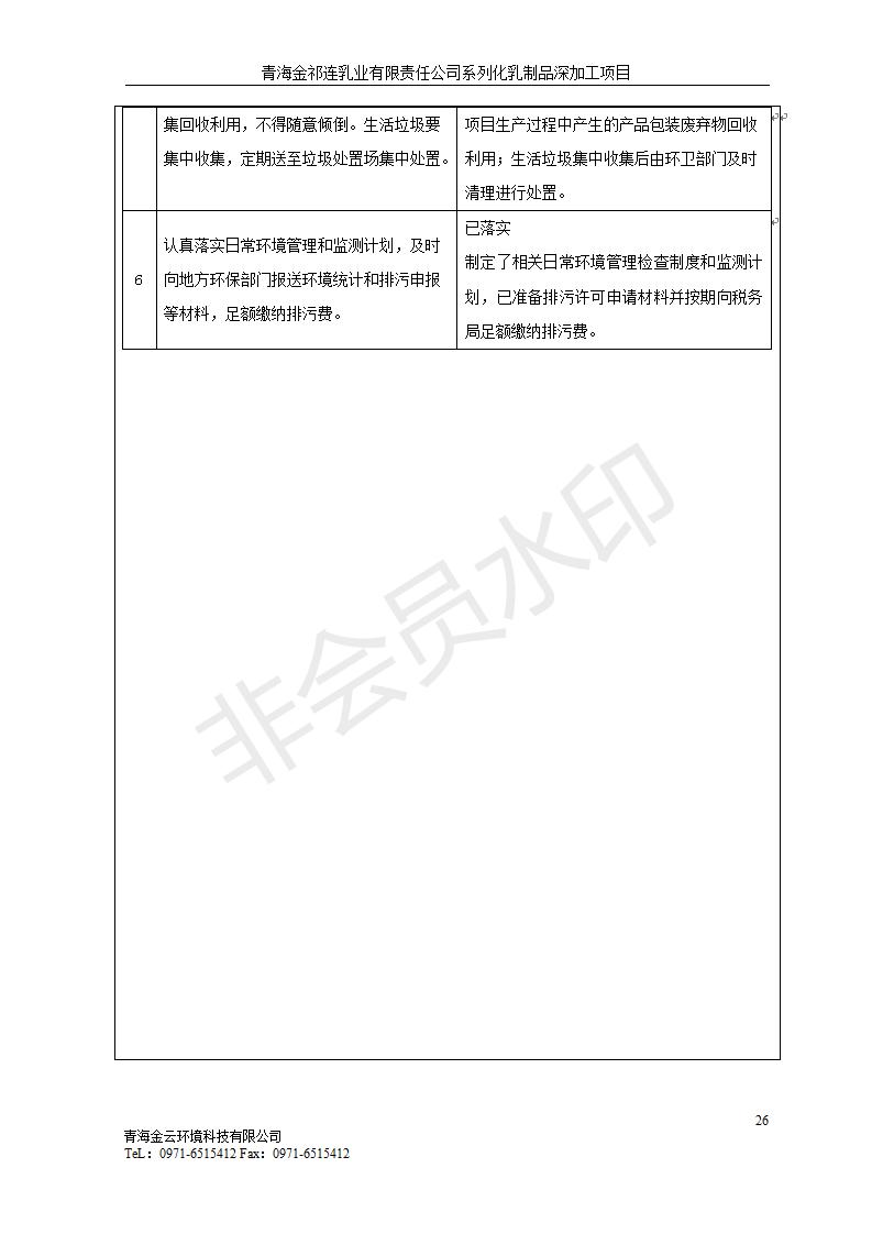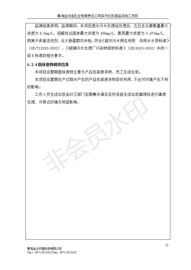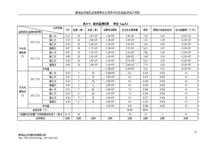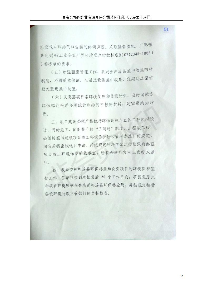 根據(jù)中華人民共和國國務院令第682號《國務院關于修改〈建設項目環(huán)境保護管理條例〉的決定》和《建設項目竣工環(huán)境保護驗收暫行辦法》(國務院令682號),青海金祁連乳業(yè)有限責任公司系列化乳制品深加工項目(包括竣工環(huán)境保護驗收監(jiān)測報告表和驗收意見)公示如下。 一、項目名稱:青海金祁連乳業(yè)有限責任公司系列化乳制品深加工項目 二、地點:海北藏族自治州祁連縣冰溝農(nóng)牧產(chǎn)業(yè)化生態(tài)園區(qū) 三、建設單位:青海金祁連乳業(yè)有限責任公司 四、建設內(nèi)容:本項目新征工業(yè)用地40畝,新建生產(chǎn)車間2200 m2、采用多聯(lián)跨鋼結構廠房,跨度為24米,長度為80米,柱間距為6米,標高為4.8米。廠房內(nèi)部根據(jù)產(chǎn)品生產(chǎn)工藝及工序要求分為不同的工作區(qū)域和車間辦公室。建設有保鮮冷庫800 m2、普通倉庫500m2、污水處理站房160 m2、鍋爐房和配電室159 m2、綜合辦公樓1200 m2、職工食堂和宿舍500 m2、其他輔助用房35 m2、蓄水池100 m2以及與土建工程相關聯(lián)的水、電、熱官網(wǎng)等輔助設施。 五、聯(lián)系人:張工 六、聯(lián)系電 話:0971-6515411 七、公示時間:二〇一九年七月十日至二〇一九年八月六日 公示期間,對上述公示內(nèi)容如有異議,請以書面形式反饋,個人須署真實姓名,單位須加蓋公章。