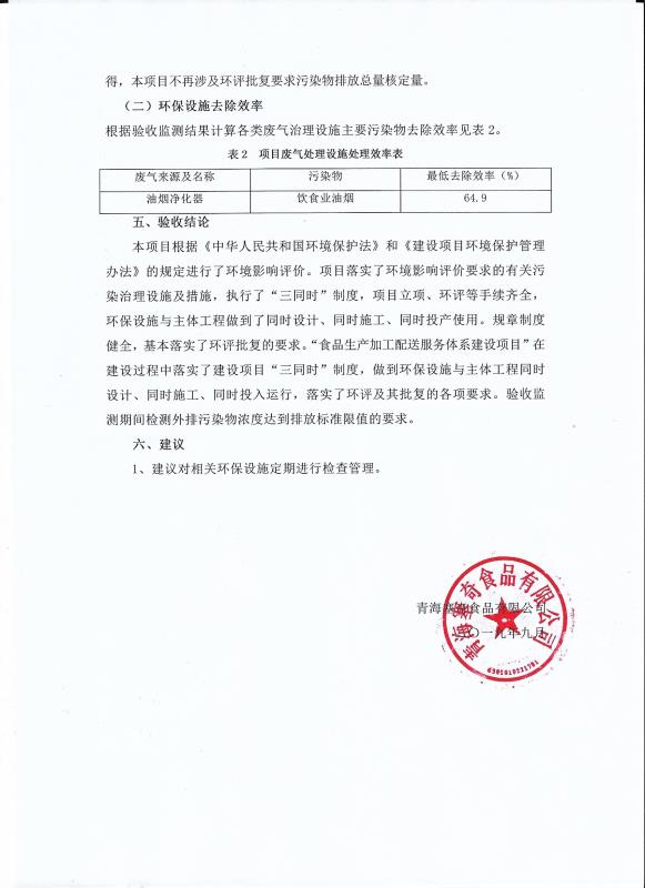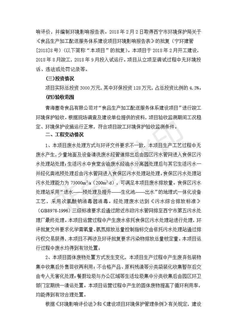 根據(jù)中華人民共和國(guó)國(guó)務(wù)院令第682號(hào)《國(guó)務(wù)院關(guān)于修改〈建設(shè)項(xiàng)目環(huán)境保護(hù)管理?xiàng)l例〉的決定》和《建設(shè)項(xiàng)目竣工環(huán)境保護(hù)驗(yàn)收暫行辦法》(國(guó)務(wù)院令682號(hào)),食品生產(chǎn)加工配送服務(wù)體系建設(shè)項(xiàng)目(包括竣工環(huán)境保護(hù)驗(yàn)收監(jiān)測(cè)報(bào)告表和驗(yàn)收意見)公示如下。 一、項(xiàng)目名稱:食品生產(chǎn)加工配送服務(wù)體系建設(shè)項(xiàng)目 二、地點(diǎn):西寧市城北區(qū)生物園區(qū)迎新路5號(hào)食品保健品集聚區(qū)1號(hào)樓 六、聯(lián)系電 話:0971-6515411 七、公示時(shí)間:二〇一九年九月二十日至二〇一九年十月二十二日 公示期間,對(duì)上述公示內(nèi)容如有異議,請(qǐng)以書面形式反饋,個(gè)人須署真實(shí)姓名,單位須加蓋公章。