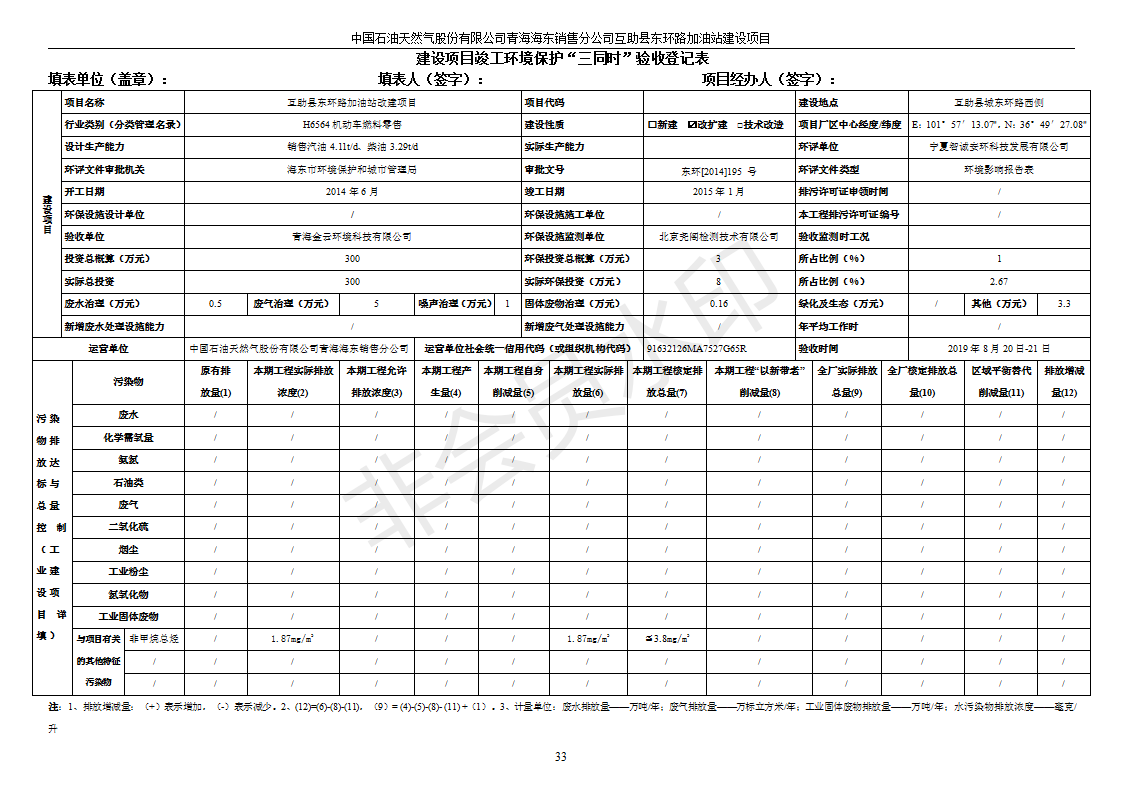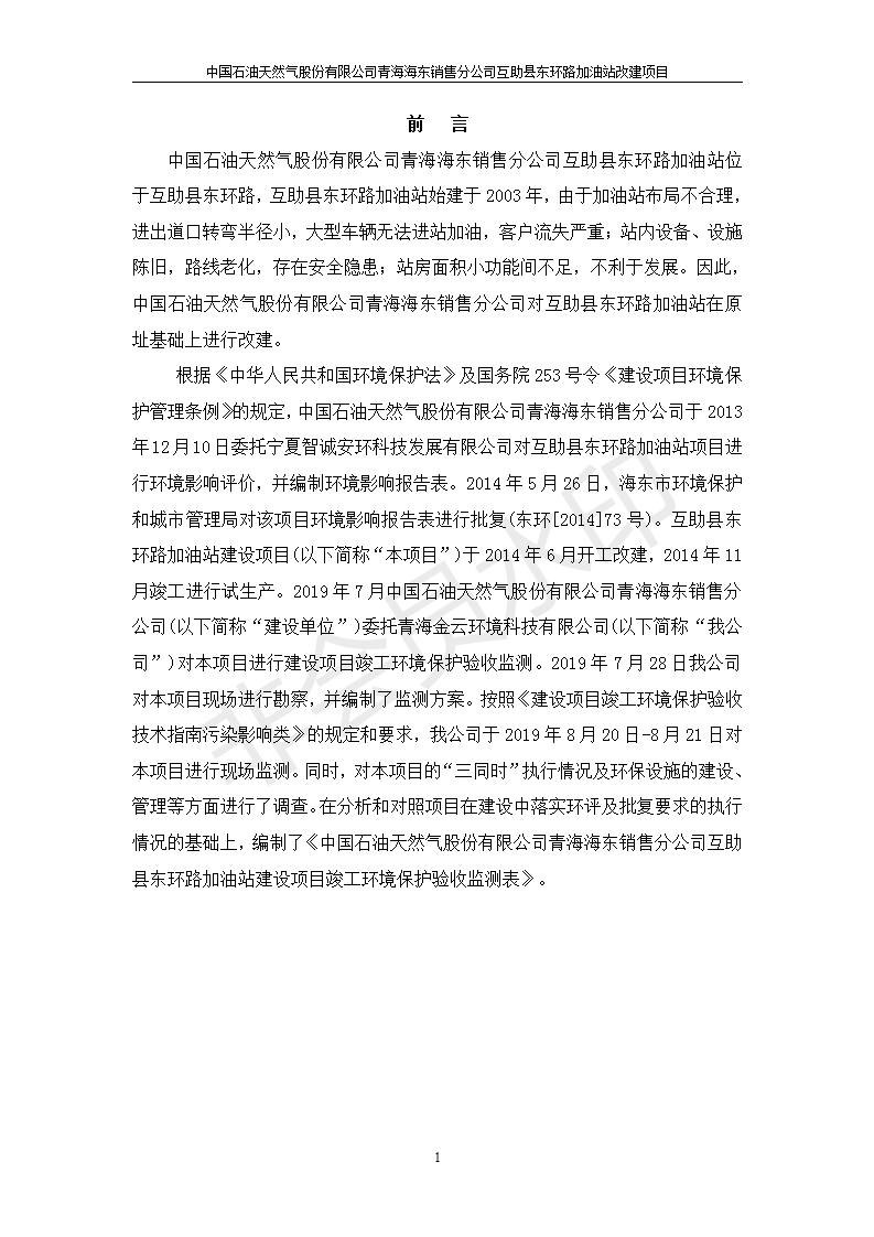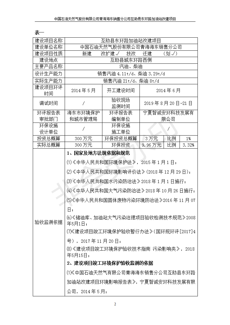 互助縣東環(huán)路加油站改建項(xiàng)目竣工環(huán)境保護(hù)驗(yàn)收監(jiān)測報(bào)告表公示