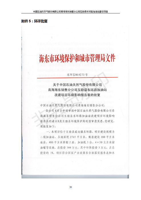 根據(jù)中華人民共和國國務(wù)院令第682號《國務(wù)院關(guān)于修改〈建設(shè)項(xiàng)目環(huán)境保護(hù)管理?xiàng)l例〉的決定》和《建設(shè)項(xiàng)目竣工環(huán)境保護(hù)驗(yàn)收暫行辦法》(國務(wù)院令682號),互助縣東環(huán)路加油站改建項(xiàng)目(包括竣工環(huán)境保護(hù)驗(yàn)收監(jiān)測報(bào)告表和驗(yàn)收意見)公示如下。