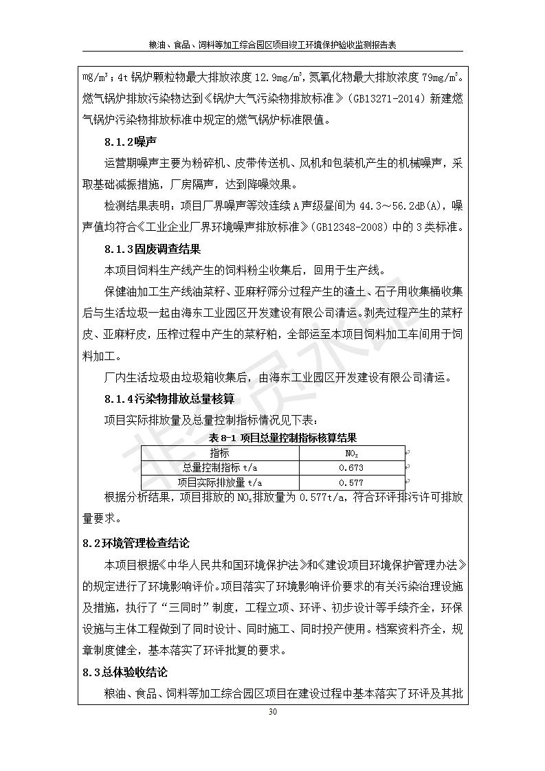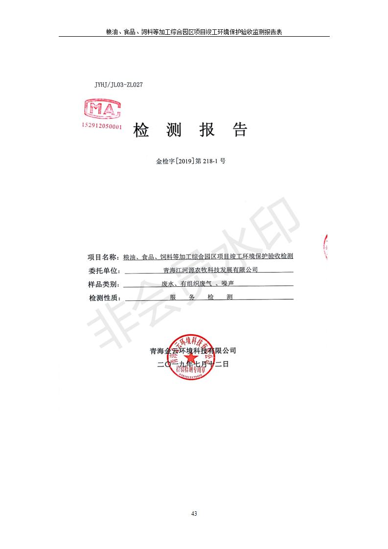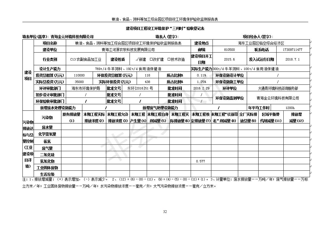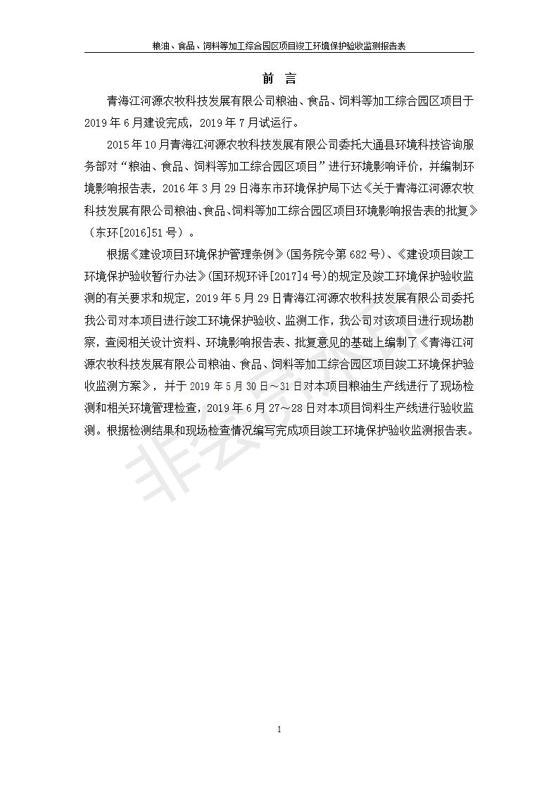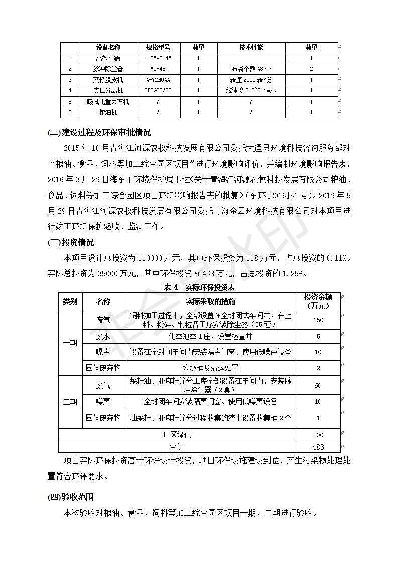 根據中華人民共和國國務院令第682號《國務院關于修改〈建設項目環(huán)境保護管理條例〉的決定》和《建設項目竣工環(huán)境保護驗收暫行辦法》(國務院令682號),糧油、食品、飼料等加工綜合園區(qū)項目竣工環(huán)境保護驗收監(jiān)測報告表(包括竣工環(huán)境保護驗收監(jiān)測報告表和驗收意見)公示如下。 一、項目名稱:糧油、食品、飼料等加工綜合園區(qū)項目 二、地點:河湟新區(qū)(海東工業(yè)園區(qū)臨空綜合經濟園) 六、聯系電話:0971-6515411 七、公示時間:二〇一九年十月九日至二〇一九年十一月五日 公示期間,對上述公示內容如有異議,請以書面形式反饋,個人須署真實姓名,單位須加蓋公章。