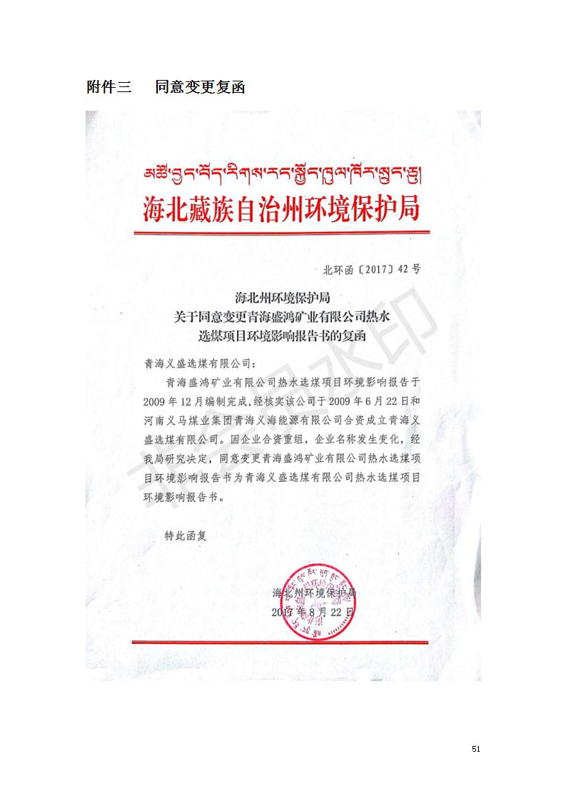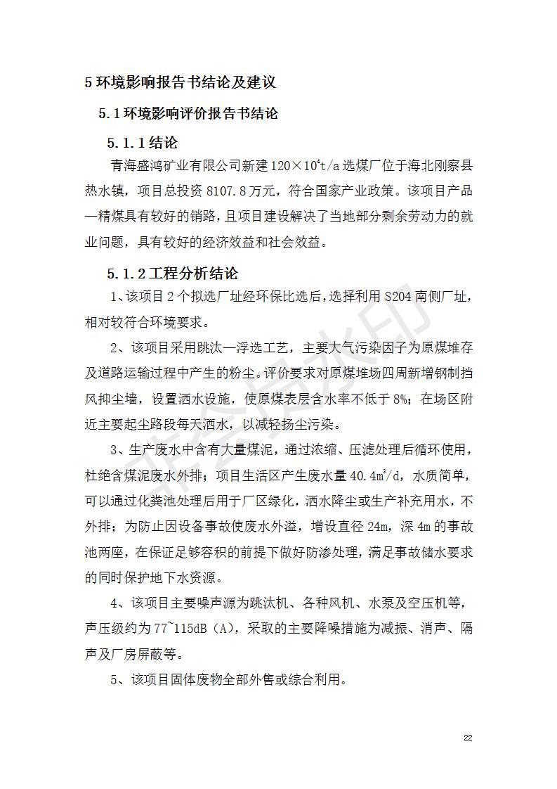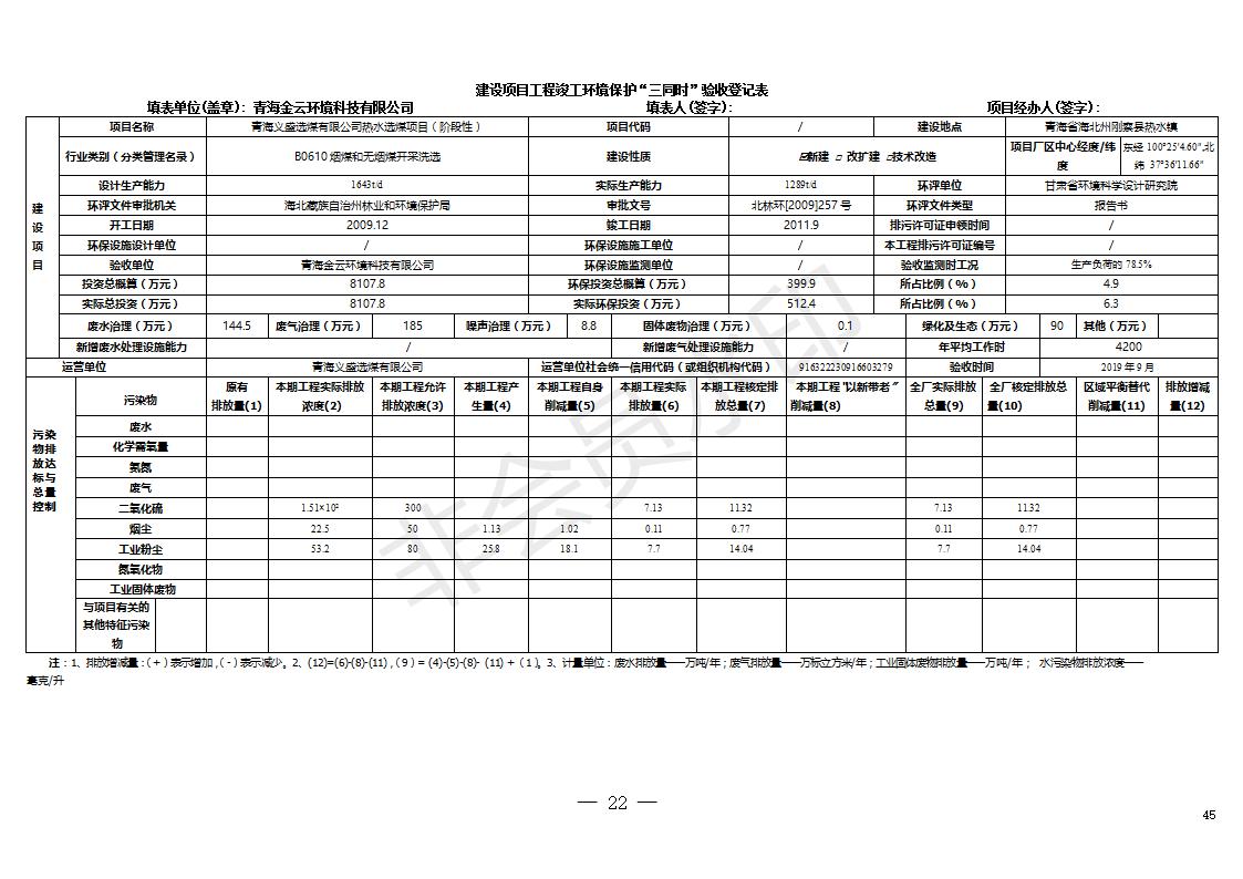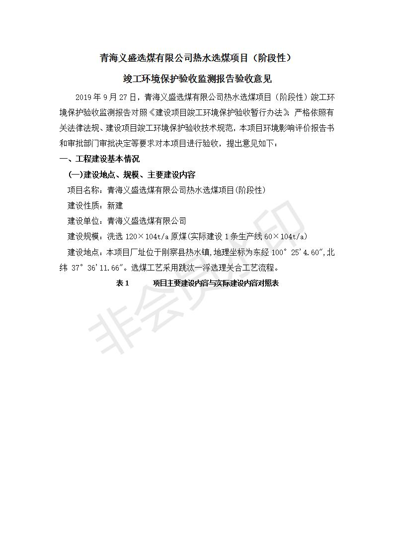 根據(jù)中華人民共和國國務(wù)院令第682號《國務(wù)院關(guān)于修改〈建設(shè)項目環(huán)境保護(hù)管理條例〉的決定》和《建設(shè)項目竣工環(huán)境保護(hù)驗收暫行辦法》(國務(wù)院令682號),青海義盛選煤有限公司熱水選煤項目(階段性)竣工環(huán)境保護(hù)驗收監(jiān)測報告(包括竣工環(huán)境保護(hù)驗收監(jiān)測報告和驗收意見)公示如下。 一、項目名稱:青海義盛選煤有限公司熱水選煤項目(階段性) 二、地點:剛察縣熱水鎮(zhèn) 此外還包括公用工程系統(tǒng)、消防系統(tǒng)及輔助生產(chǎn)設(shè)施等。 五、聯(lián)系人:張工六、聯(lián)系電話:0971-6515411 七、公示時間:二〇一九年十一月十二日至二〇一九年十二月九日