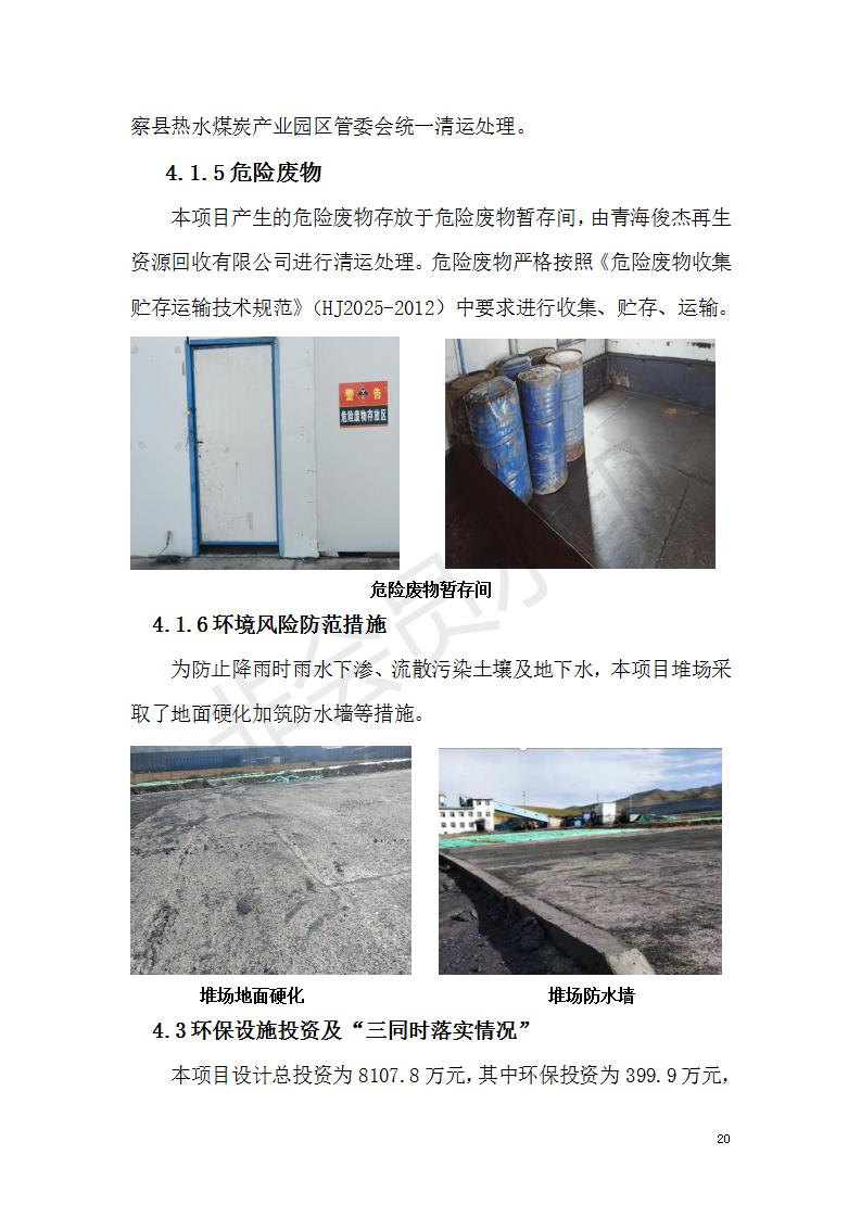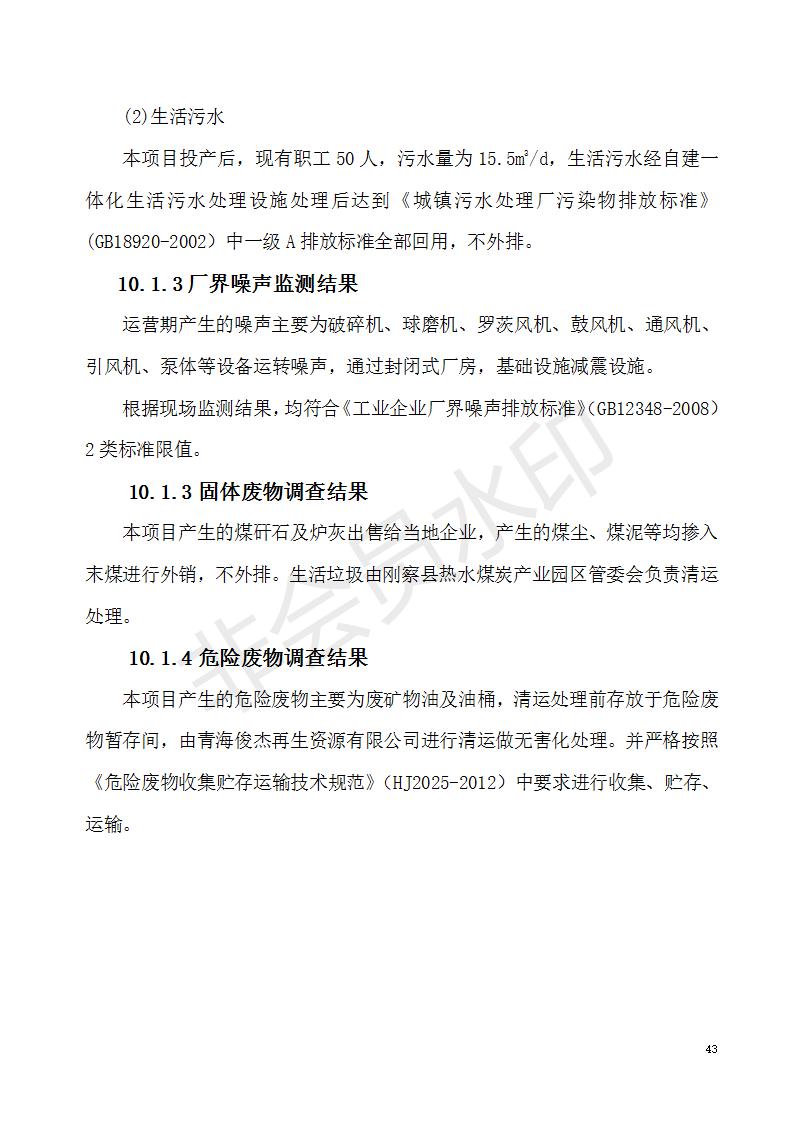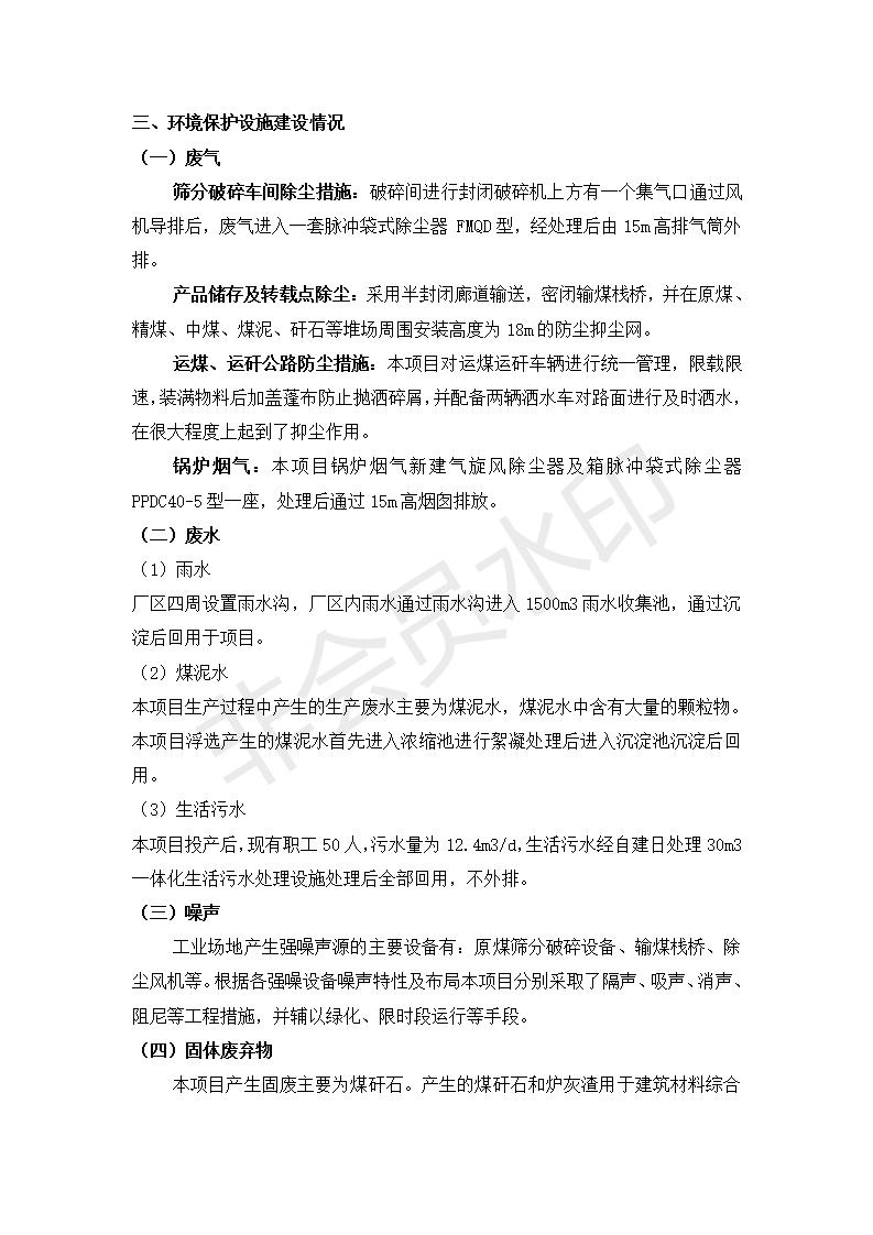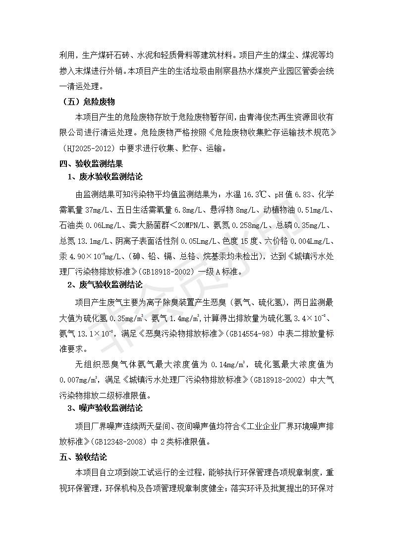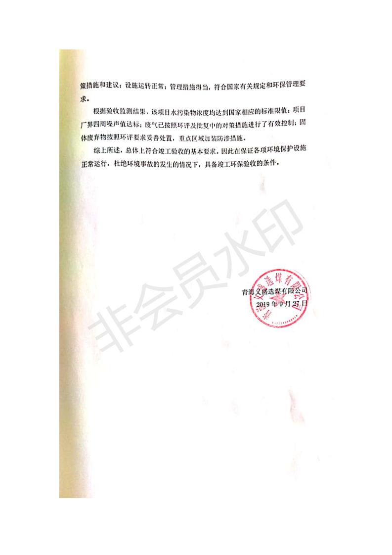根據(jù)中華人民共和國國務(wù)院令第682號《國務(wù)院關(guān)于修改〈建設(shè)項目環(huán)境保護(hù)管理條例〉的決定》和《建設(shè)項目竣工環(huán)境保護(hù)驗收暫行辦法》(國務(wù)院令682號),青海義盛選煤有限公司熱水選煤項目(階段性)竣工環(huán)境保護(hù)驗收監(jiān)測報告(包括竣工環(huán)境保護(hù)驗收監(jiān)測報告和驗收意見)公示如下。 一、項目名稱:青海義盛選煤有限公司熱水選煤項目(階段性) 二、地點:剛察縣熱水鎮(zhèn) 此外還包括公用工程系統(tǒng)、消防系統(tǒng)及輔助生產(chǎn)設(shè)施等。 五、聯(lián)系人:張工六、聯(lián)系電話:0971-6515411 七、公示時間:二〇一九年十一月十二日至二〇一九年十二月九日