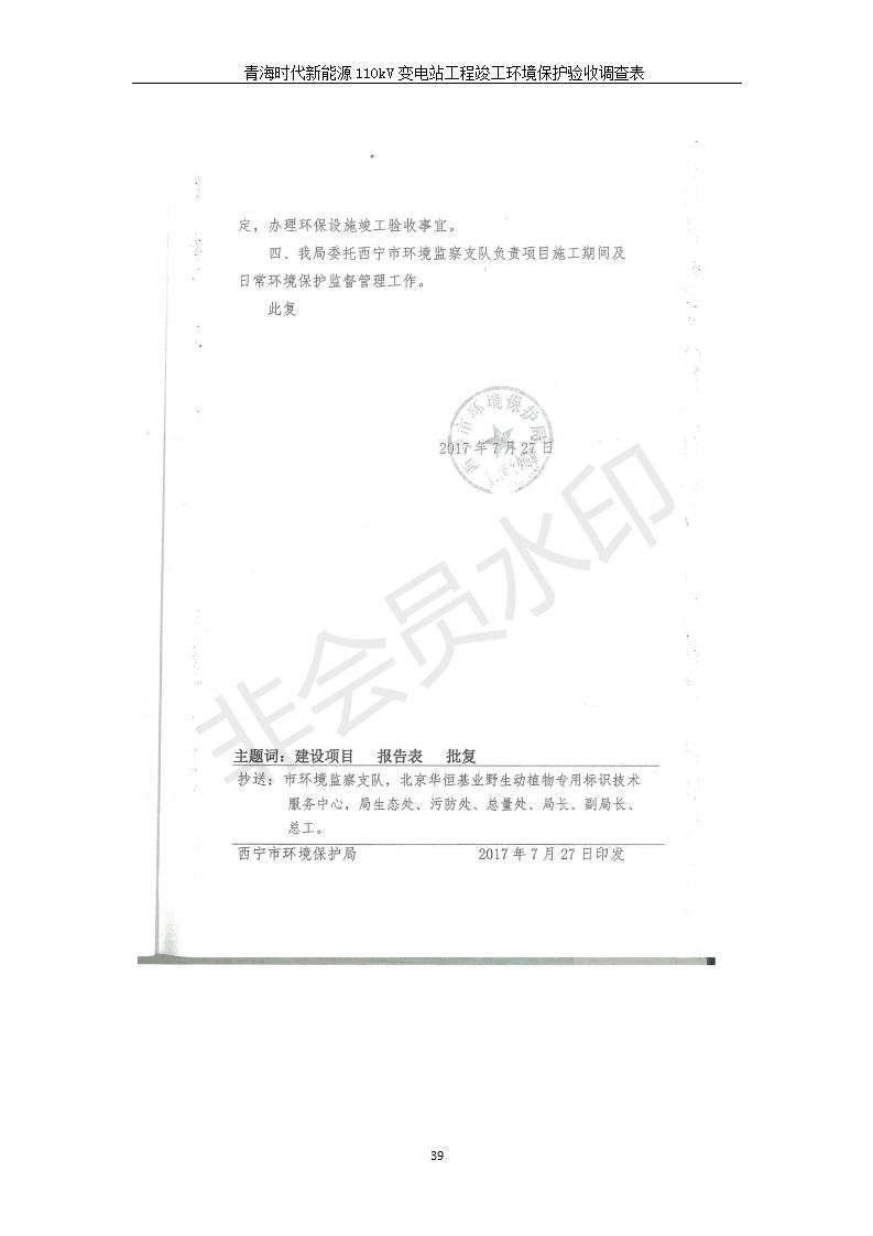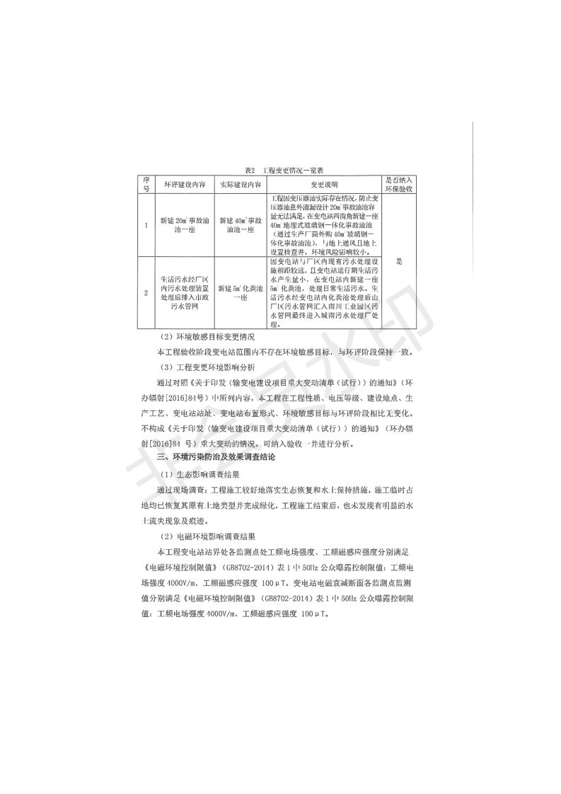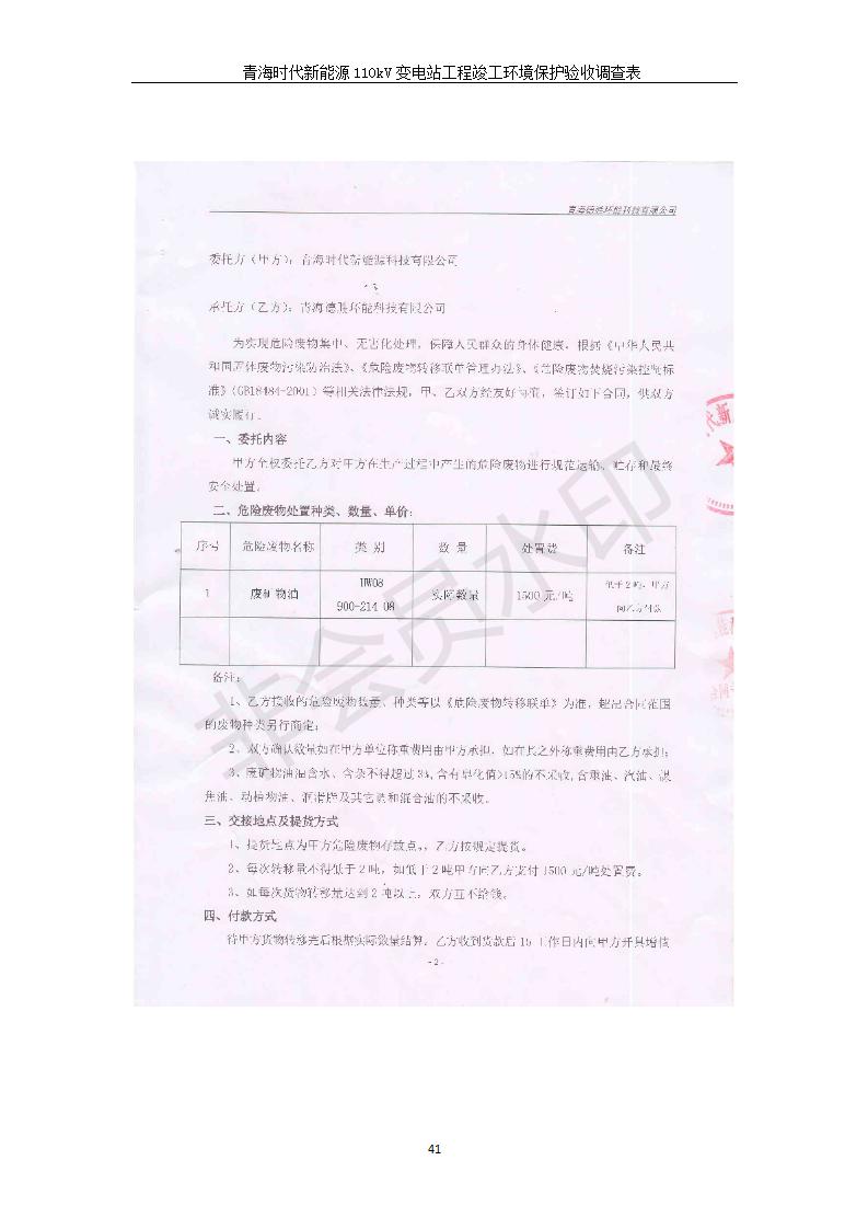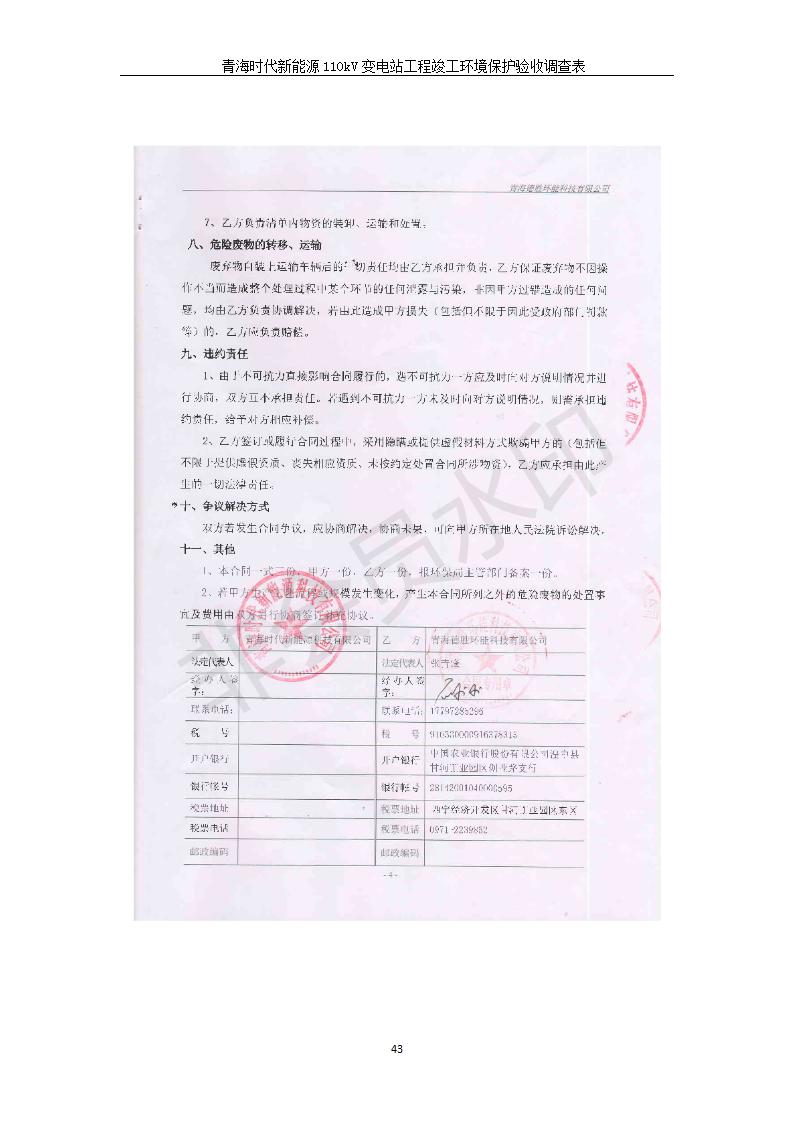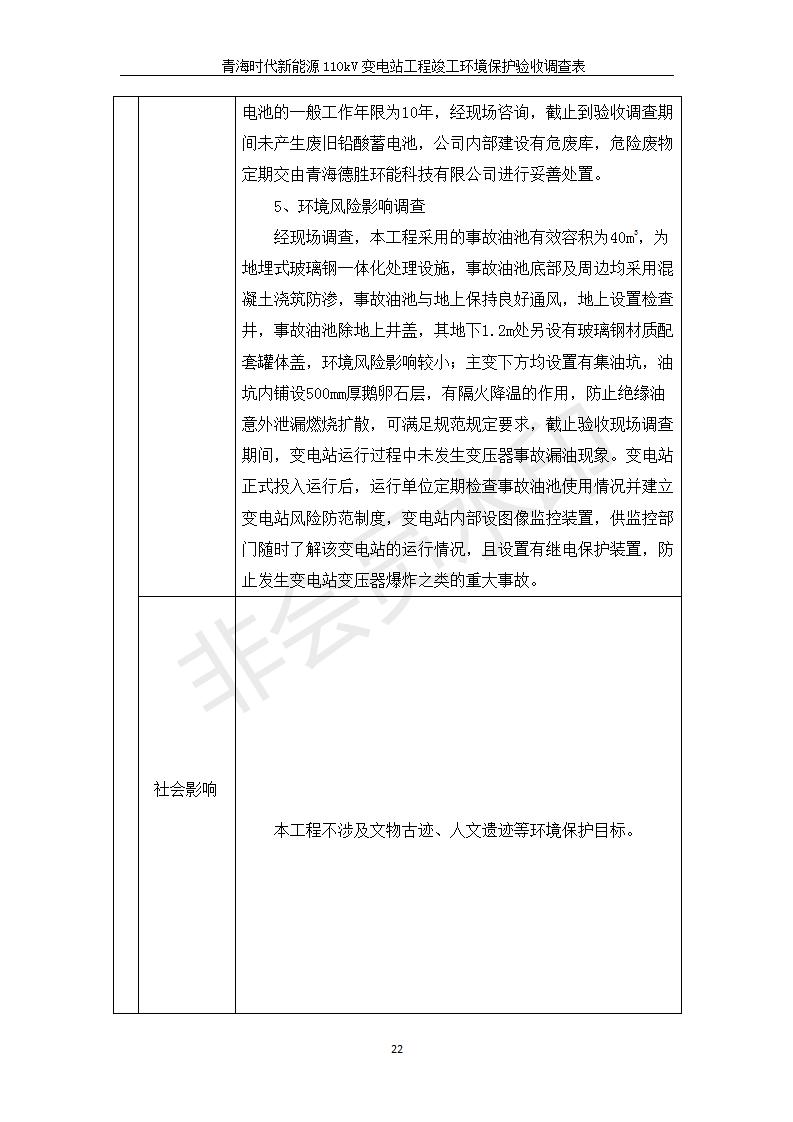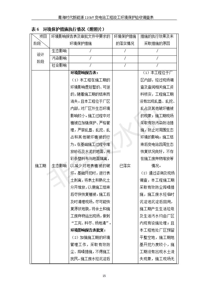 根據(jù)中華人民共和國國務(wù)院令第682號《國務(wù)院關(guān)于修改〈建設(shè)項目環(huán)境保護管理條例〉的決定》和《建設(shè)項目竣工環(huán)境保護驗收暫行辦法》(國務(wù)院令682號),青海時代新能源110kV變電站工程(包括竣工環(huán)境保護驗收調(diào)查表和驗收意見)公示如下。 一、項目名稱:青海時代新能源110kV變電站工程 二、地點:青海省西寧市南川工業(yè)園區(qū)創(chuàng)業(yè)路182號青海時代新能源科技有限公司廠區(qū)內(nèi) 三、建設(shè)單位:青海時代新能源科技有限公司 四、建設(shè)內(nèi)容:青海時代新能源 110kV 變電站采用全戶內(nèi)布置方式,依據(jù)環(huán)評報告及批復(fù)文件,經(jīng)現(xiàn)場踏勘本工程建設(shè)只包含變電站建設(shè)部分,輸電線路由南川工業(yè)園區(qū)管委會負責(zé)建設(shè),輸電線路不屬于本次驗收調(diào)查范圍。工程本期規(guī)模2×31.5MVA,電壓等級為110/10kV。變電站 110kV 出線間隔最終2回,本期建設(shè)出線間隔2回;10kV最終電纜出線8回,本期電纜出線6回。 五、聯(lián)系人:張工 六、聯(lián)系電話:0971-6515411 七、公示時間:二〇二〇年一月十四日至二〇二〇年二月十三日 公示期間,對上述公示內(nèi)容如有異議,請以書面形式反饋,個人須署真實姓名,單位須加蓋公章。