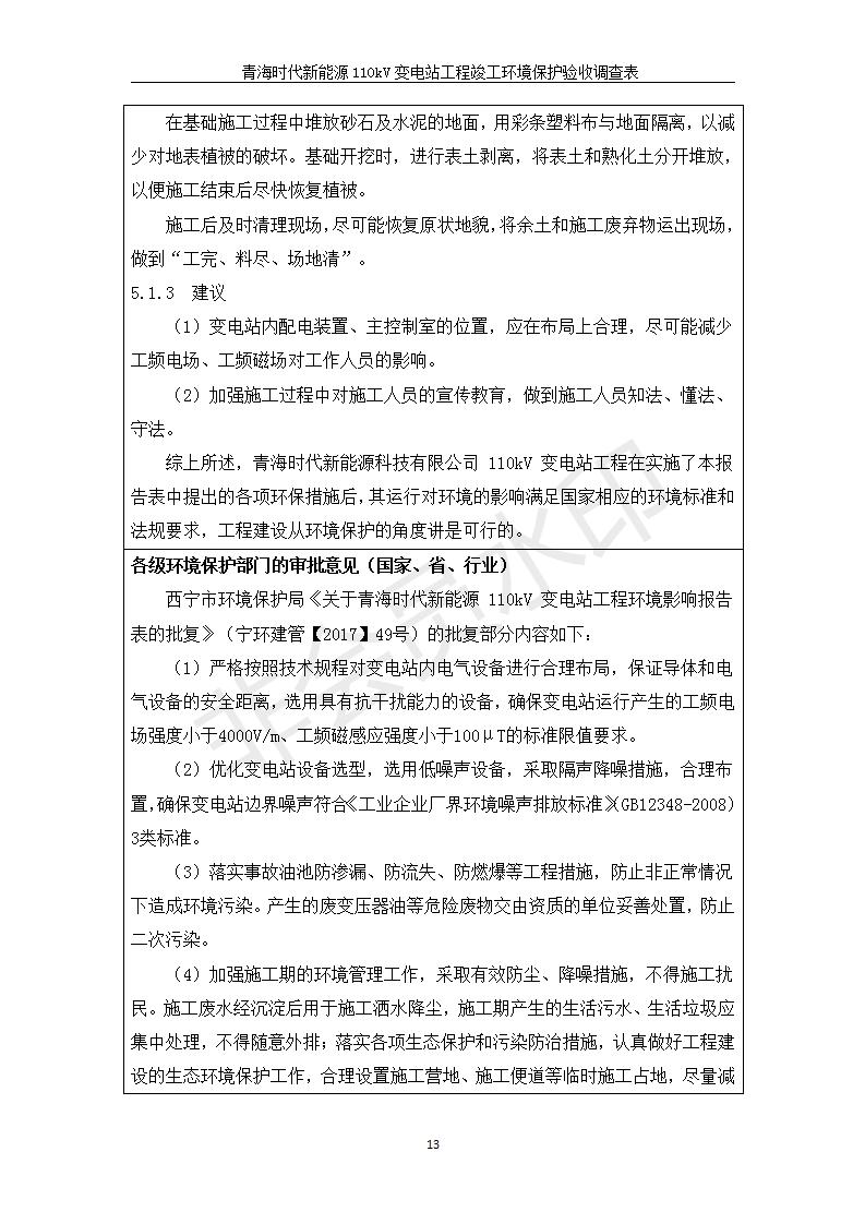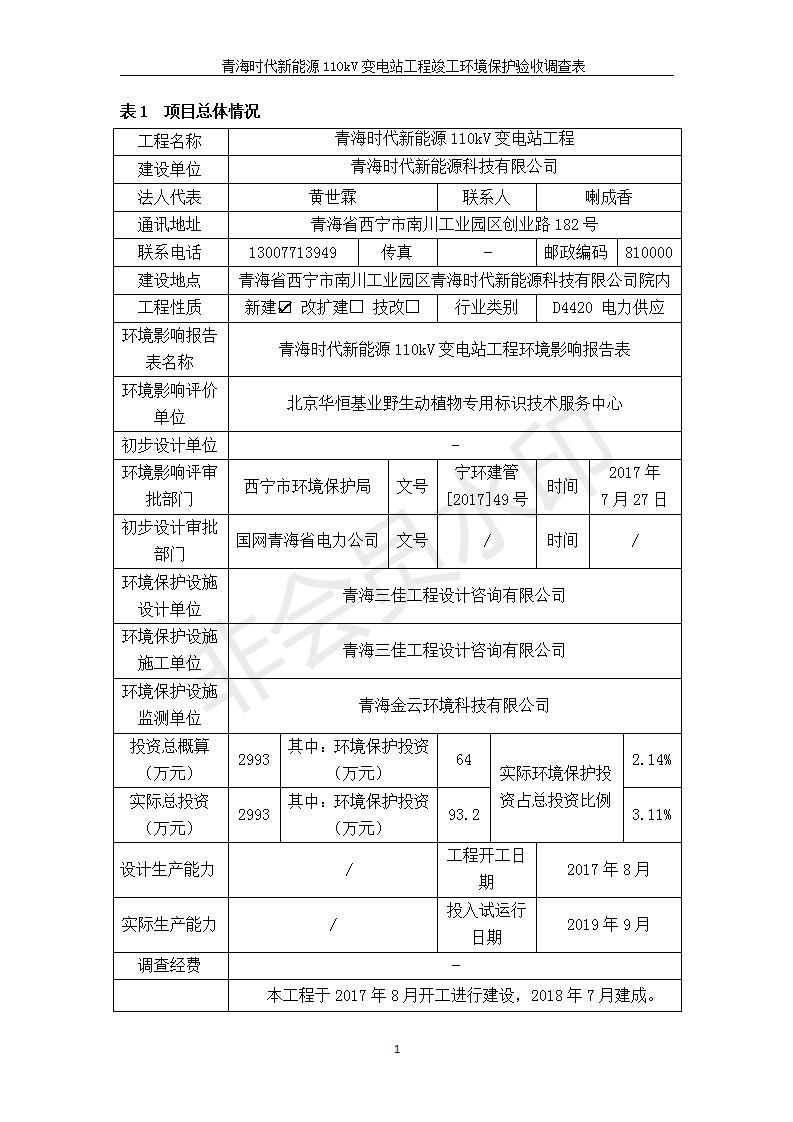 青海時代新能源110kV變電站工程竣工環(huán)境保護驗收調(diào)查表公示發(fā)布日期:(2020-1-14) 點擊次數(shù):2739 |