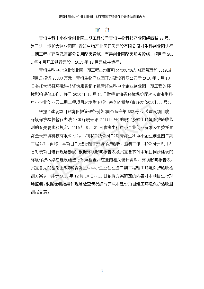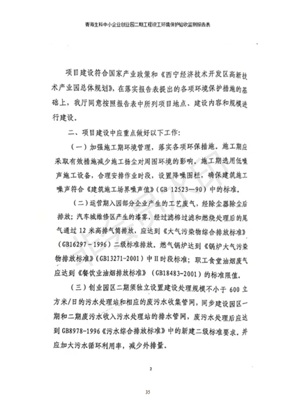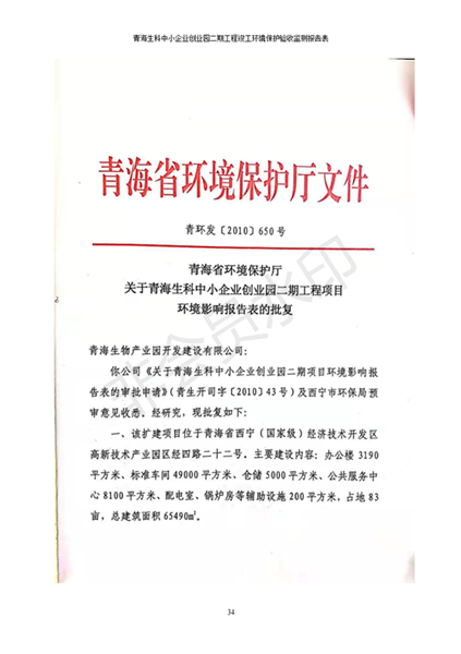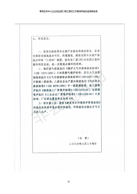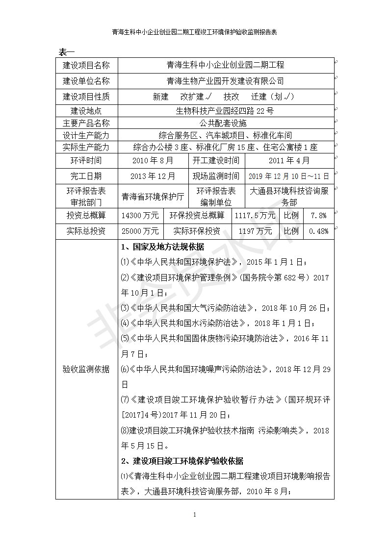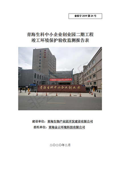 據(jù)中華人民共和國國務(wù)院令第682號《國務(wù)院關(guān)于修改〈建設(shè)項(xiàng)目環(huán)境保護(hù)管理?xiàng)l例〉的決定》和《建設(shè)項(xiàng)目竣工環(huán)境保護(hù)驗(yàn)收暫行辦法》(國務(wù)院令682號),青海生科中小企業(yè)創(chuàng)業(yè)園二期工程建設(shè)項(xiàng)目(包括竣工環(huán)境保護(hù)驗(yàn)收監(jiān)測報(bào)告表和驗(yàn)收意見)公示如下。