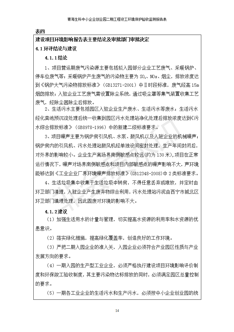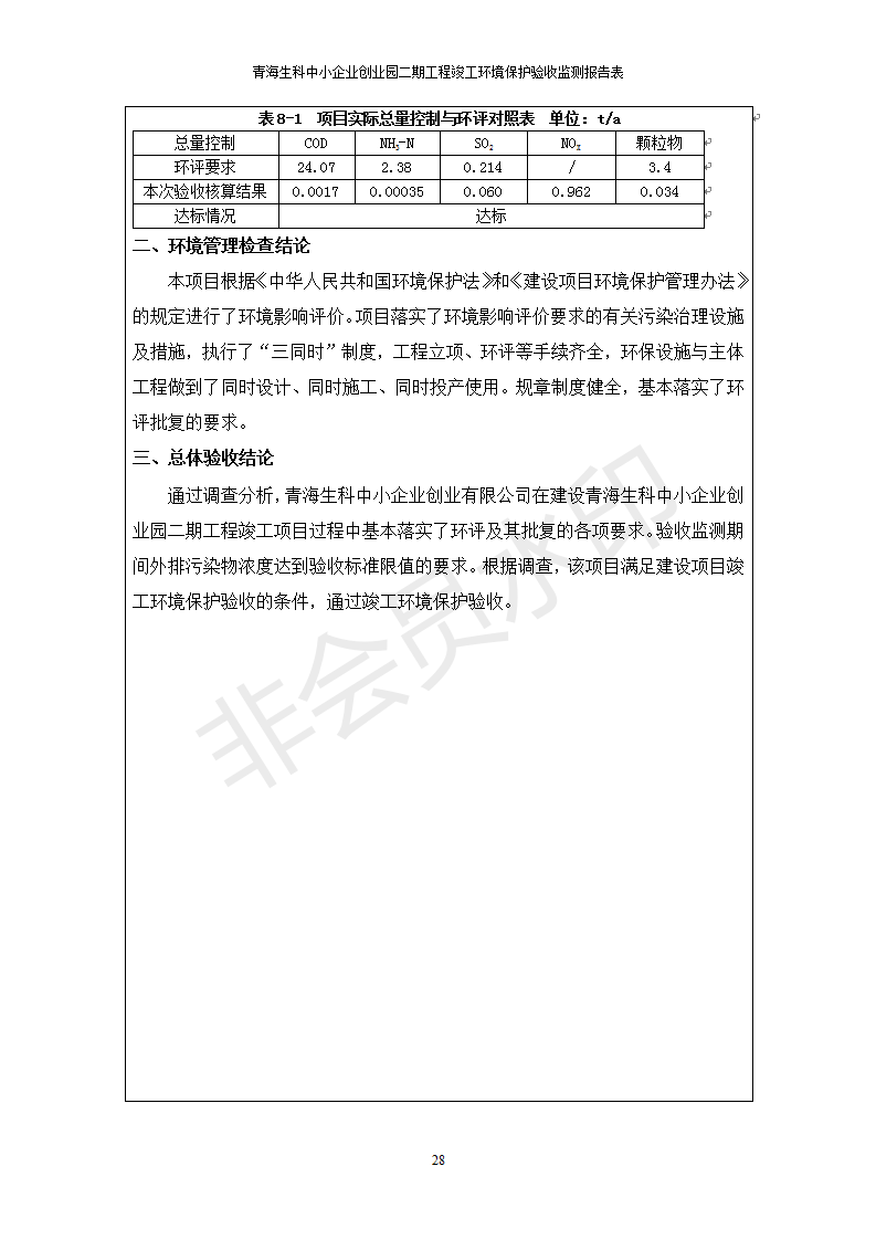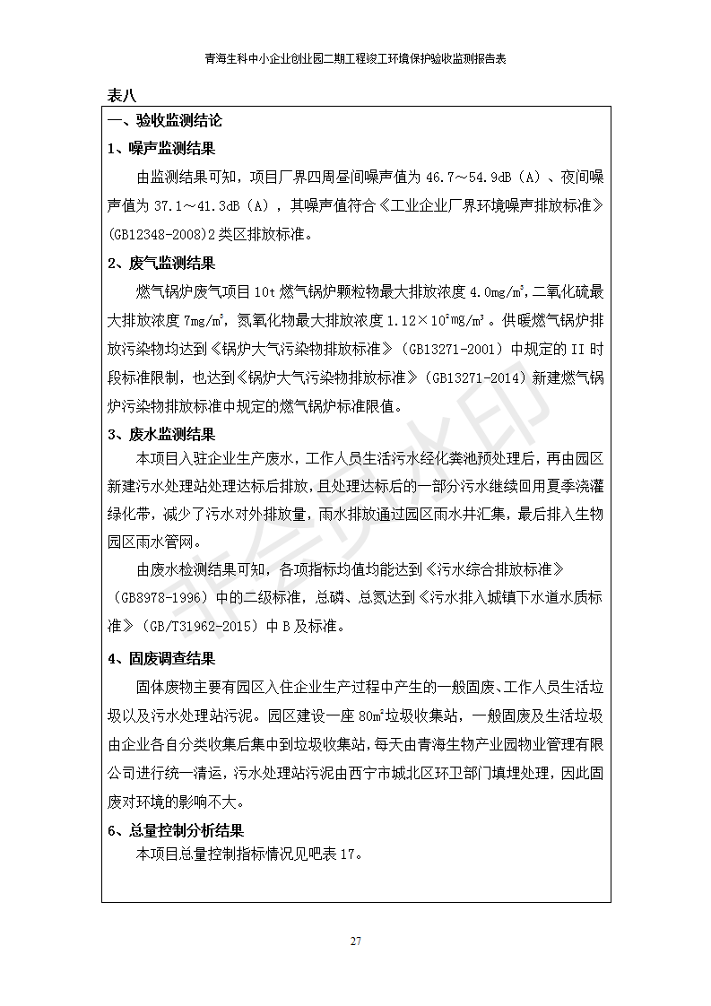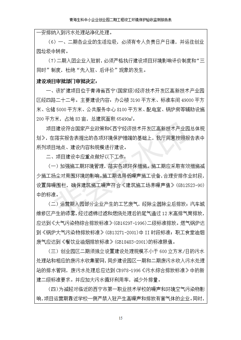 據(jù)中華人民共和國國務(wù)院令第682號《國務(wù)院關(guān)于修改〈建設(shè)項(xiàng)目環(huán)境保護(hù)管理?xiàng)l例〉的決定》和《建設(shè)項(xiàng)目竣工環(huán)境保護(hù)驗(yàn)收暫行辦法》(國務(wù)院令682號),青海生科中小企業(yè)創(chuàng)業(yè)園二期工程建設(shè)項(xiàng)目(包括竣工環(huán)境保護(hù)驗(yàn)收監(jiān)測報(bào)告表和驗(yàn)收意見)公示如下。