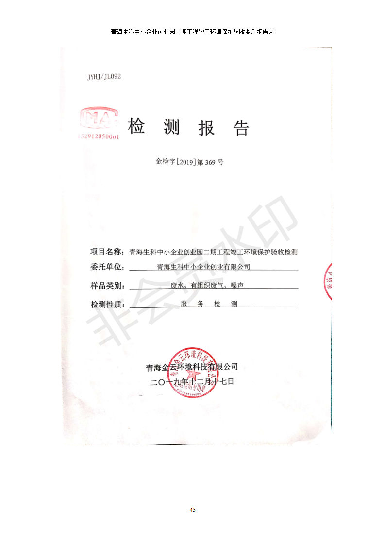 青海生科中小企業(yè)創(chuàng)業(yè)園二期工程建設(shè)項(xiàng)目竣工環(huán)境保護(hù)驗(yàn)收檢測報(bào)告表公示