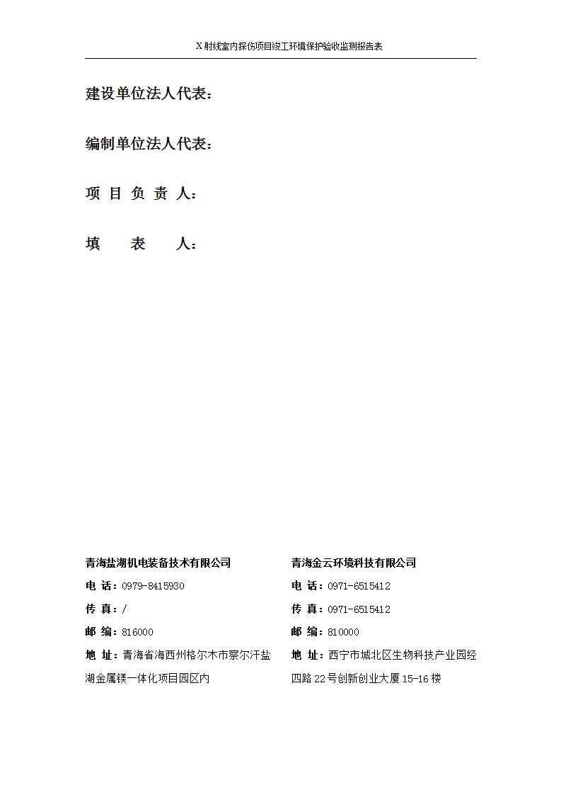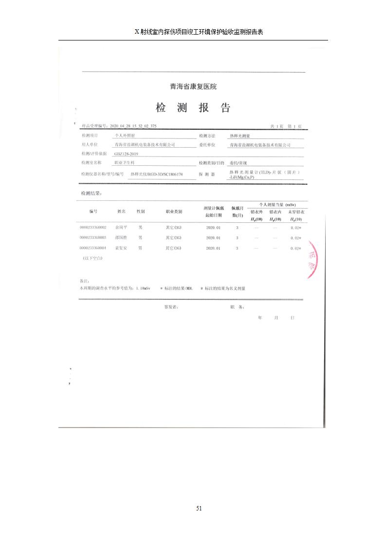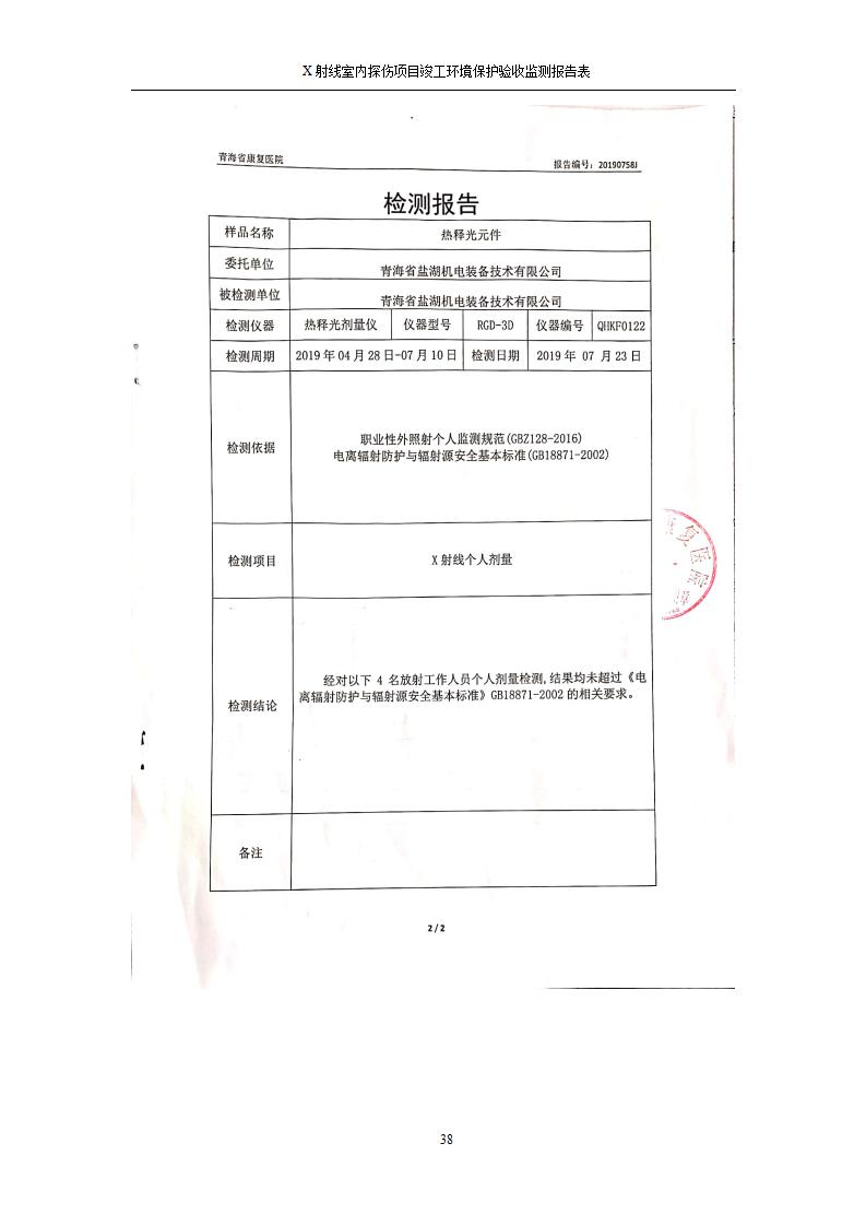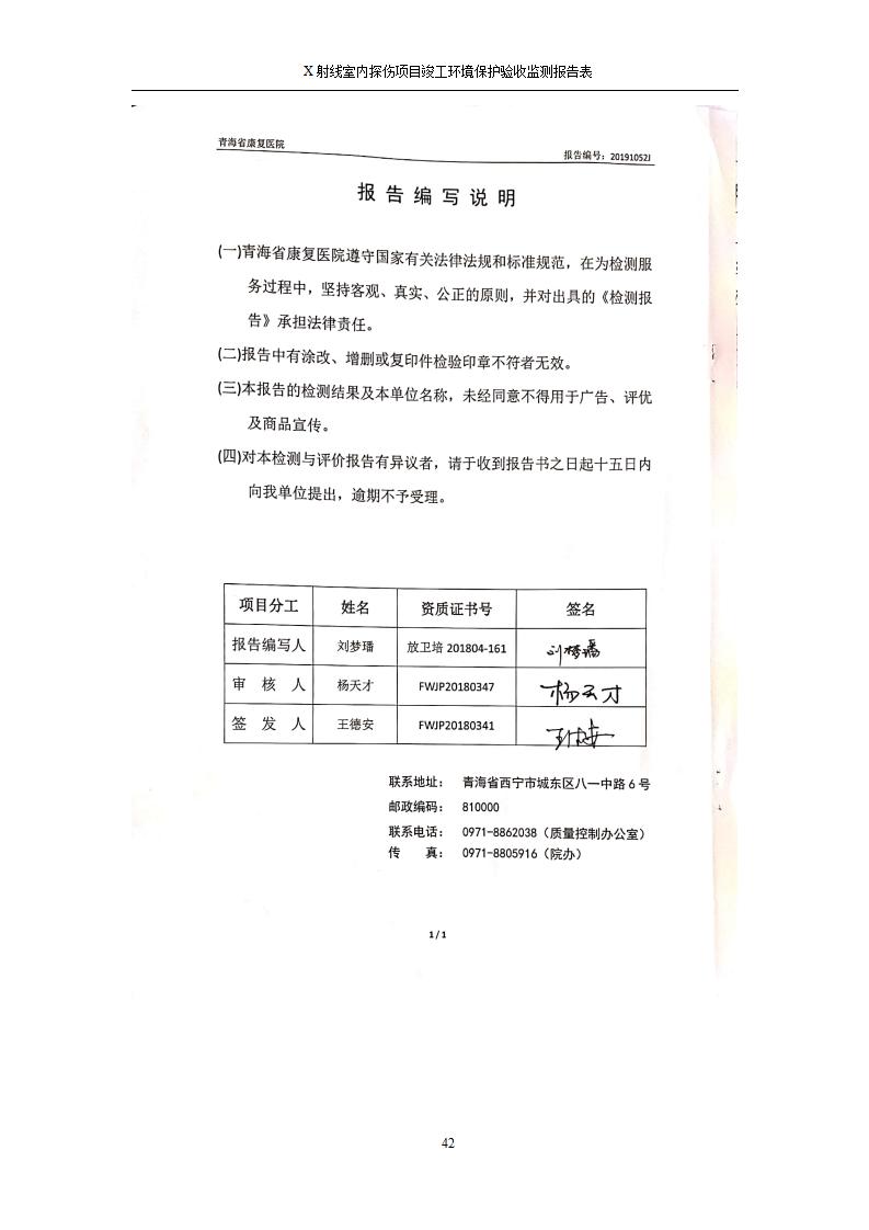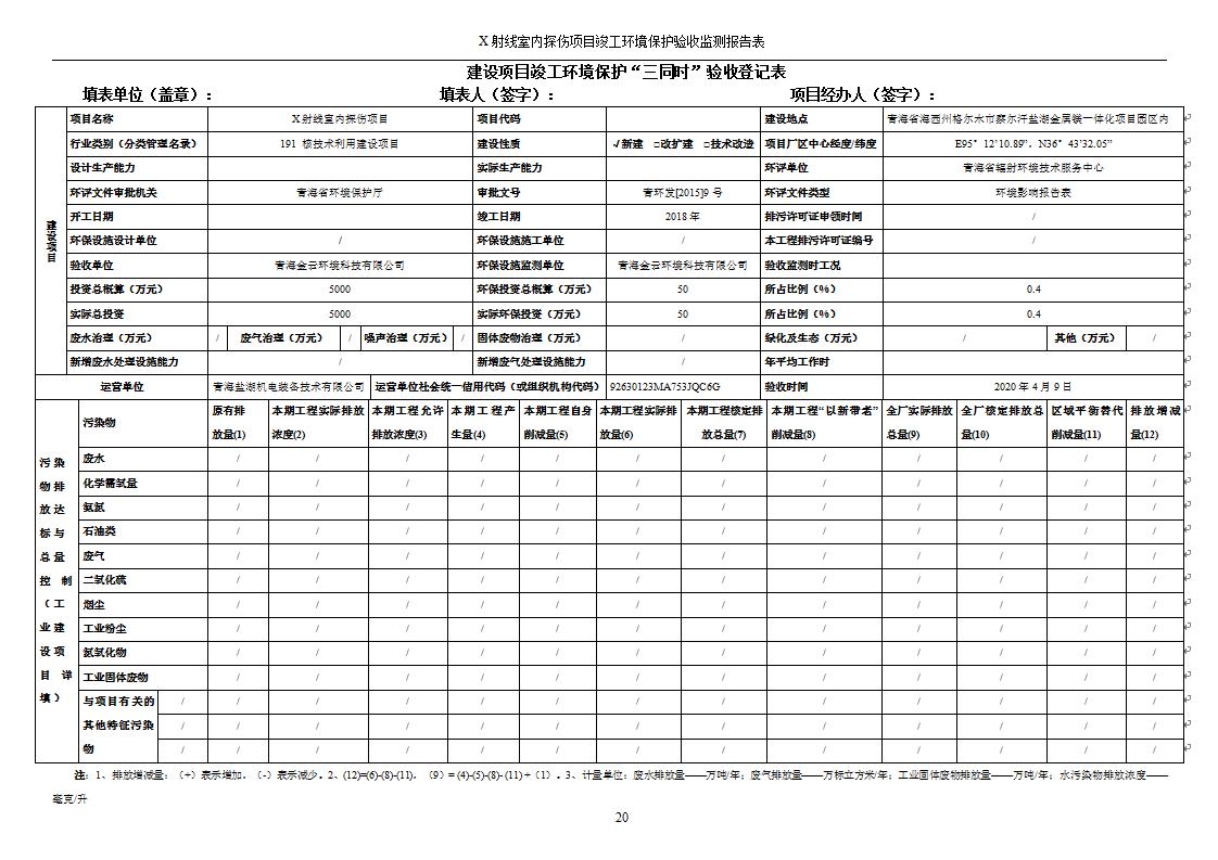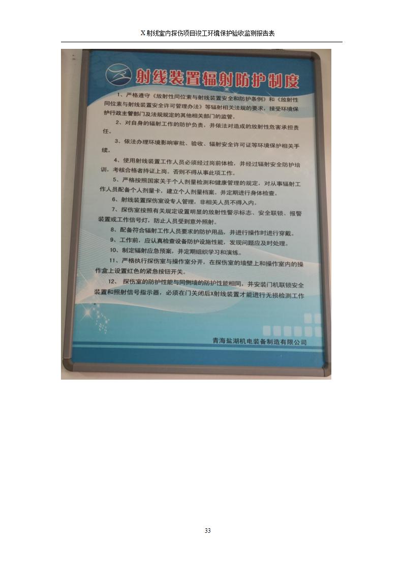 青海鹽湖機(jī)電裝備技術(shù)有限公司X射線室內(nèi)探傷項(xiàng)目竣工環(huán)境保護(hù)驗(yàn)收監(jiān)測(cè)報(bào)告表公示發(fā)布日期:(2020-7-10) 點(diǎn)擊次數(shù):3286 |