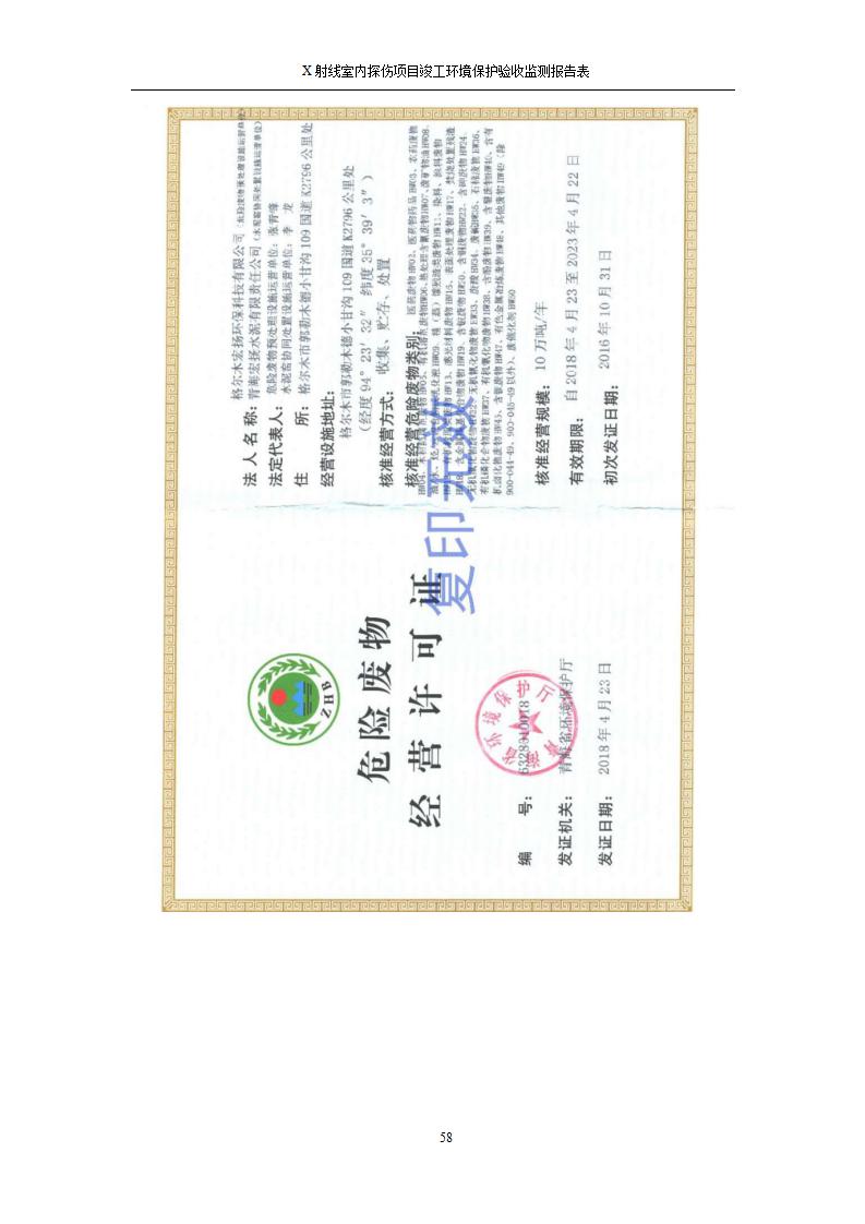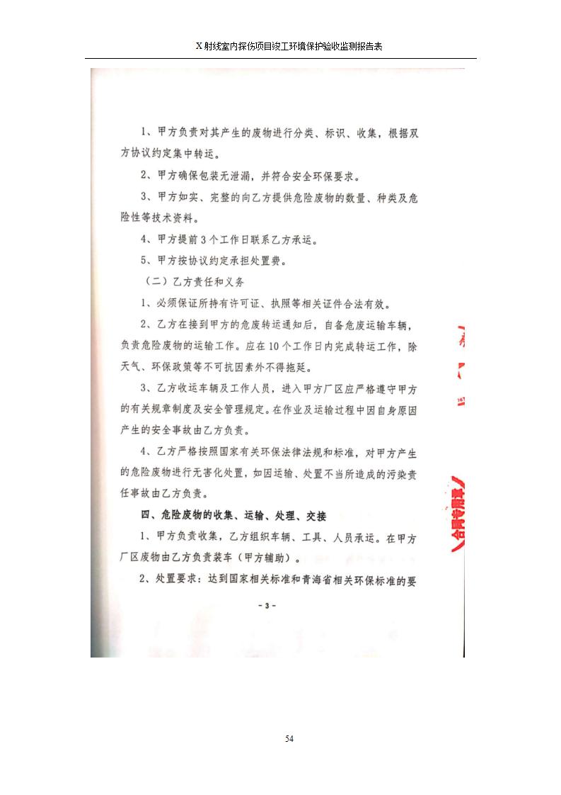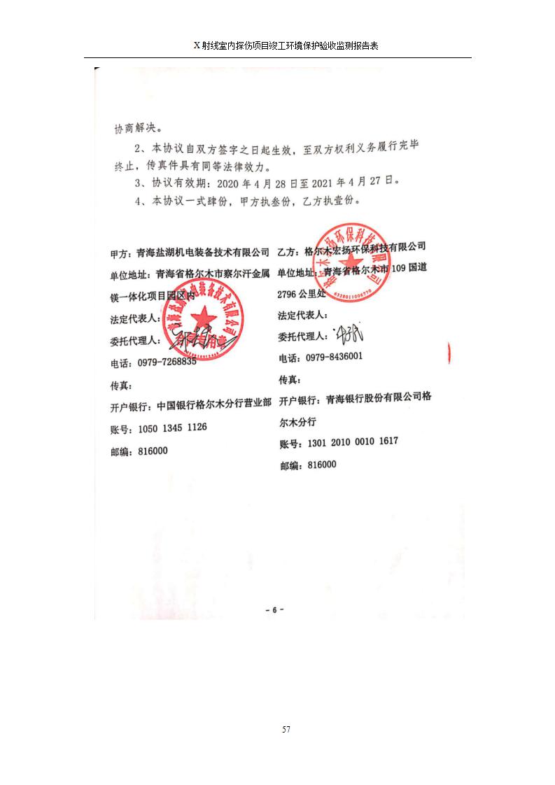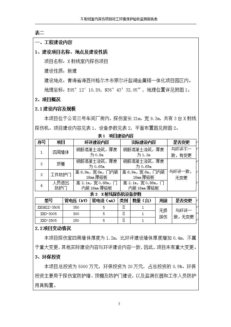 根據(jù)中華人民共和國國務(wù)院令第682號(hào)《國務(wù)院關(guān)于修改〈建設(shè)項(xiàng)目環(huán)境保護(hù)管理?xiàng)l例〉的決定》和《建設(shè)項(xiàng)目竣工環(huán)境保護(hù)驗(yàn)收暫行辦法》(國務(wù)院令682號(hào)),青海鹽湖機(jī)電裝備技術(shù)有限公司X射線室內(nèi)探傷項(xiàng)目竣工環(huán)境保護(hù)驗(yàn)收監(jiān)測(cè)報(bào)告表公示如下。 一、項(xiàng)目名稱:X射線室內(nèi)探傷項(xiàng)目竣工環(huán)境保護(hù)驗(yàn)收監(jiān)測(cè)報(bào)告表 二、地點(diǎn):青海省海西州格爾木市察爾汗鹽湖金屬鎂一體化項(xiàng)目園區(qū)內(nèi) 三、建設(shè)單位:青海鹽湖機(jī)電裝備技術(shù)有限公司 四、建設(shè)內(nèi)容:本項(xiàng)目位于公司三號(hào)車間廠房?jī)?nèi),探傷室長(zhǎng)21m,寬9.3m,共有3臺(tái)X射線探傷機(jī)。 五、聯(lián)系人:楊工 六、聯(lián)系電 話:0971-6515411 七、公示時(shí)間:二〇二〇年七月十日至二〇二〇年八月六日 公示期間,對(duì)上述公示內(nèi)容如有異議,請(qǐng)以書面形式反饋,個(gè)人須署真實(shí)姓名,單位須加蓋公章。